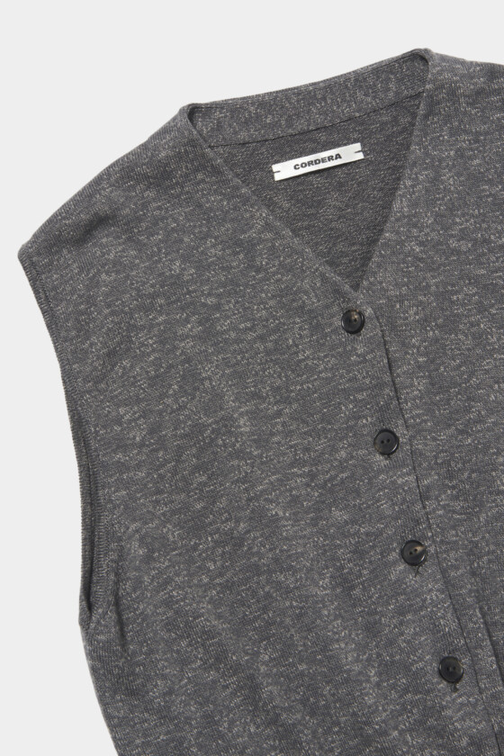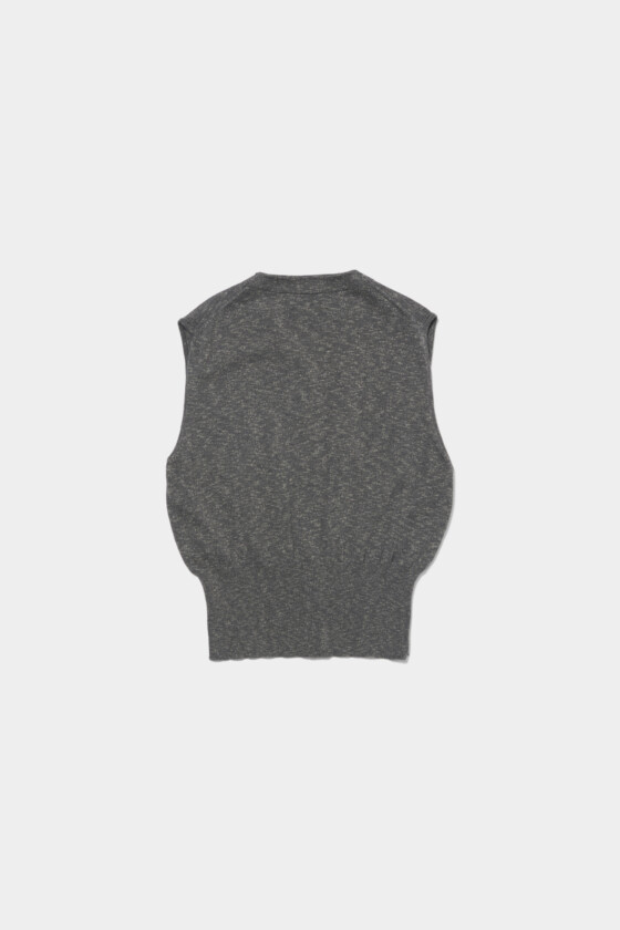 ベストは着回し力200%!私のワードローブに欠かせない存在です。ハイゲージのニットベストは、深めのVネックがレイヤードにぴったりで、シャツやカットソーとも好バランス。使いやすいグレーカラーなので、春らしいペールカラーとも相性がよく、スタイリングの幅をぐっと広げてくれる一枚です。