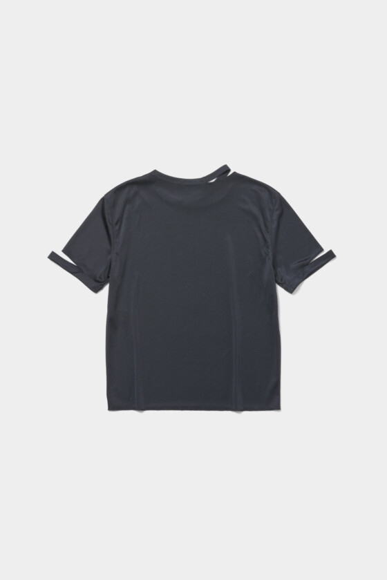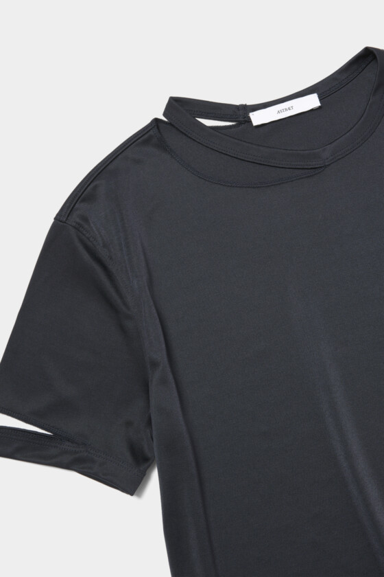 ベーシックなデザインに、さりげなく効いたネックラインがポイントで、デイリーに取り入れやすい一枚。光沢感のある生地は春夏はもちろん、季節を問わずスタイリングのアクセントになってくれます。重ね着しやすいので、私が大好きなレイヤードスタイルも簡単に楽しめる、頼れるアイテムです。