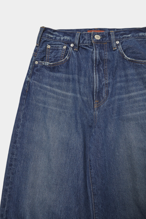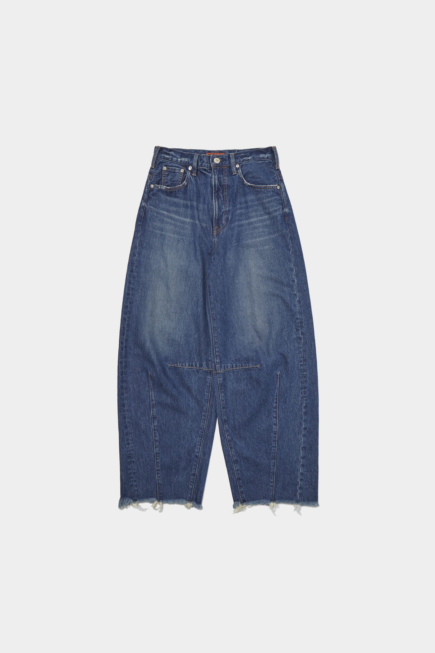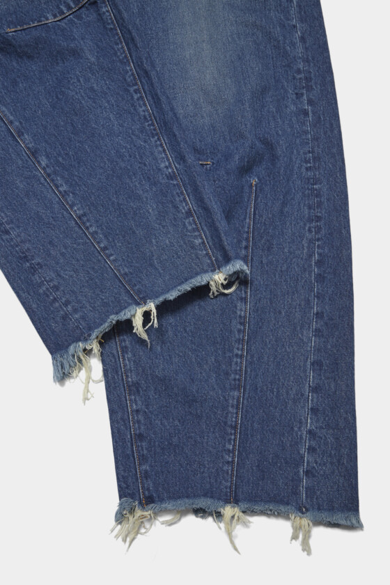 タックによって湾曲したラインが映えるウォッシュドデニムは、穿くだけでスタイリングに奥行きを出してくれる一本。程よいワイドフィットとカーブシルエットがかっこいいです。アタリやダメージ、カットオフの裾がほどよく力の抜けたムードを演出。