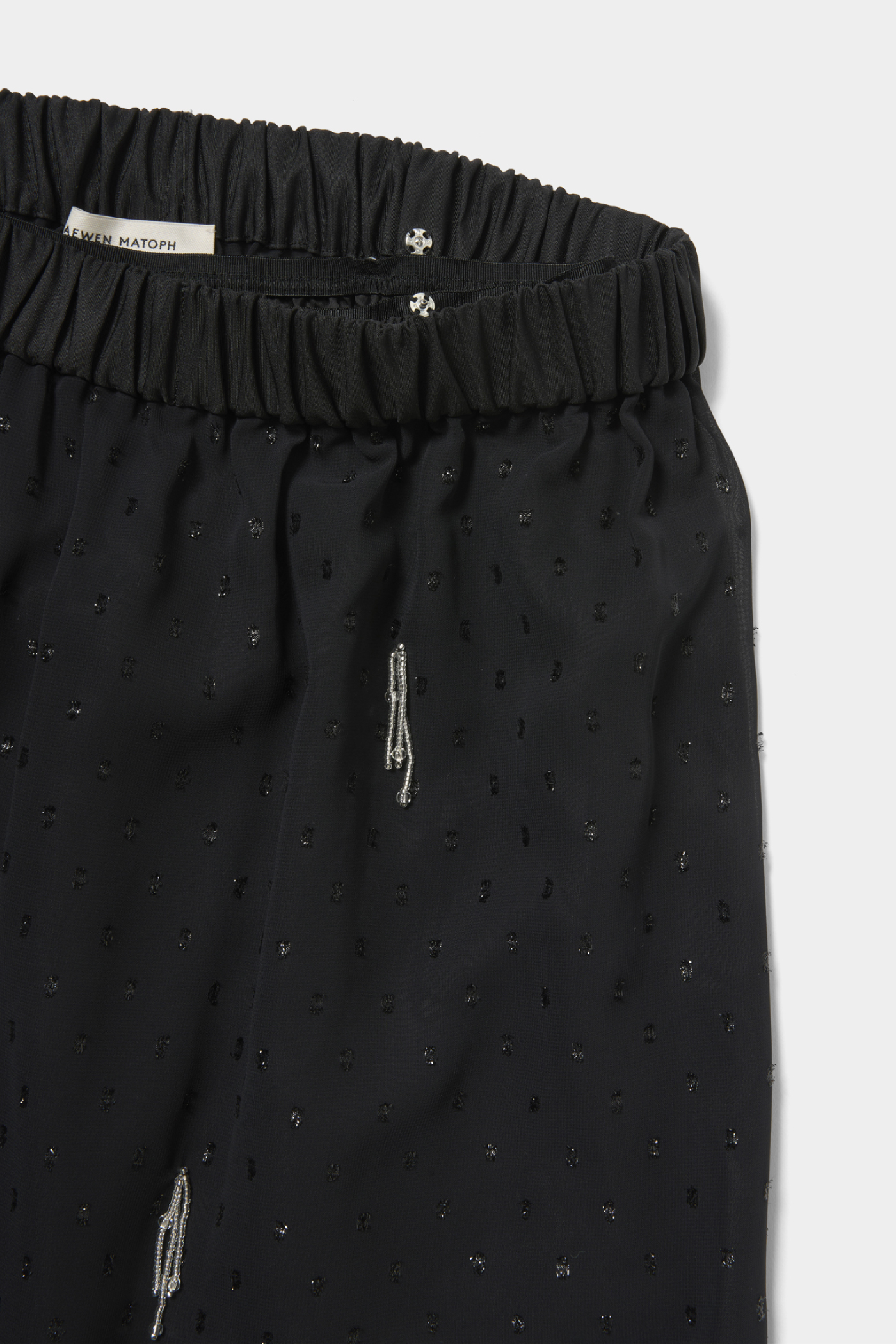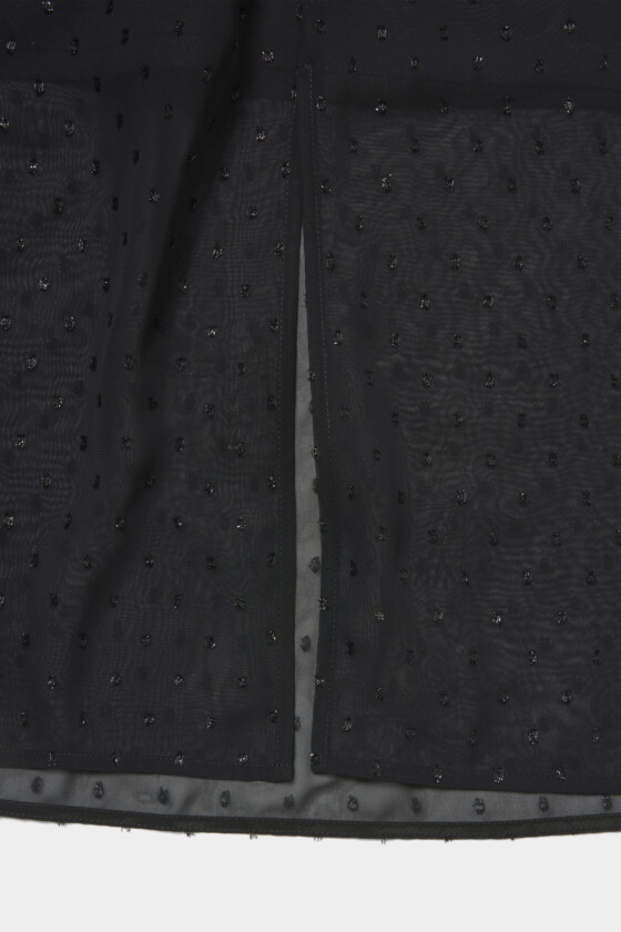 ビーズのフリンジデザインに惹かれた一着。シアー素材なので、黒でも重たくならず軽やかに着こなせます。中にデニムパンツを重ねてレイヤードするスタイリングがお気に入り。汎用性が高く、合わせるアイテム次第でガーリーにもストリートにも振れるので、その日の気分に合わせて表情を変えてくれます。
