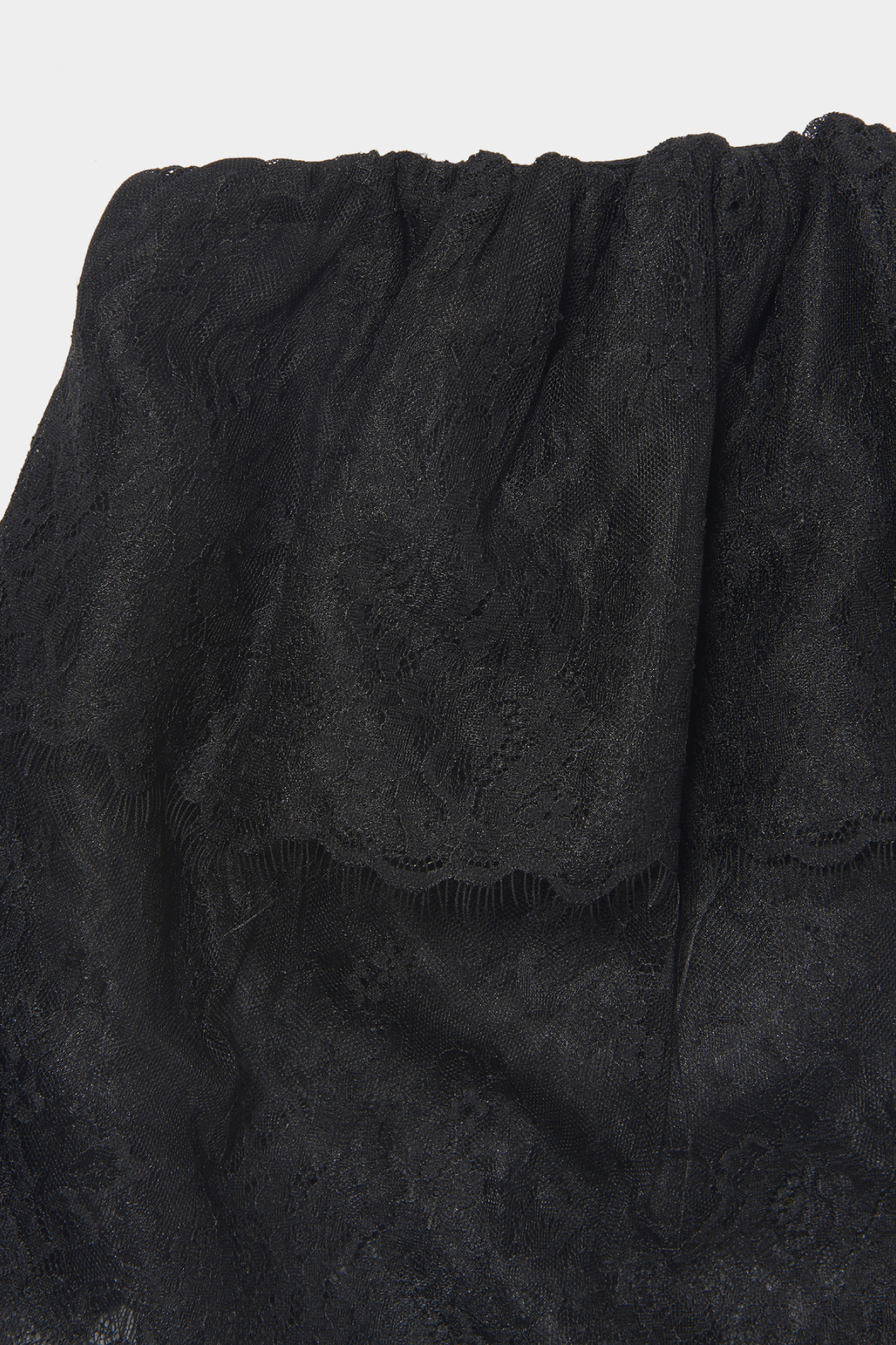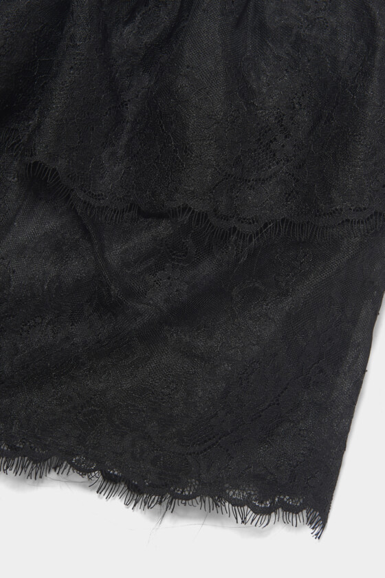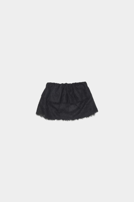 超ミニ丈のレーススカートは、シルエットがしっかりしていて形が崩れにくい優れもの。短丈なのでパンツやワンピースとのレイヤードもしやすく、スタイリングの幅が広がります。主張しすぎないブラックカラーのレースで、多くのコーディネートに自然に馴染むのもうれしい。アクセントとして取り入れやすいと思います。