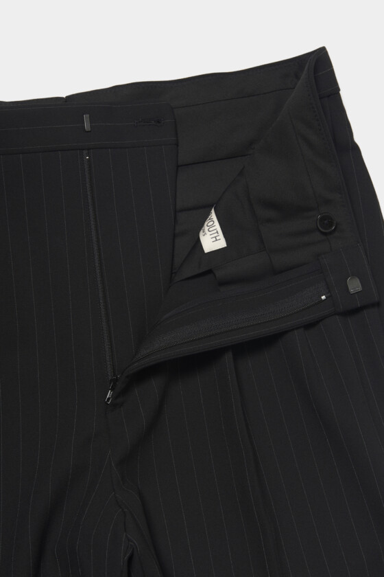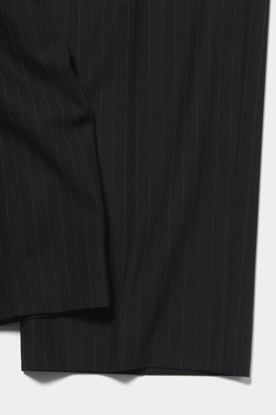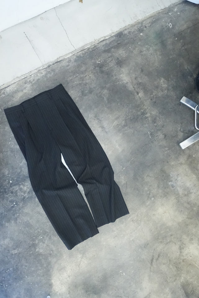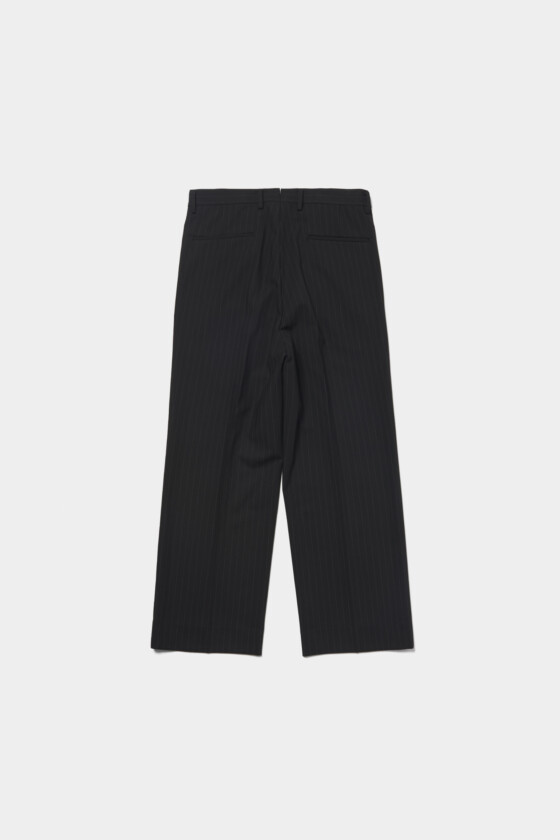 落ち感がきれいなワイドシルエットのスラックスは、スニーカーでラフに着こなしたり、ブーツに合わせてスマートなスタイリングにもおすすめ。レザージャケットと合わせて、モードなオールブラックコーデに仕上げて。