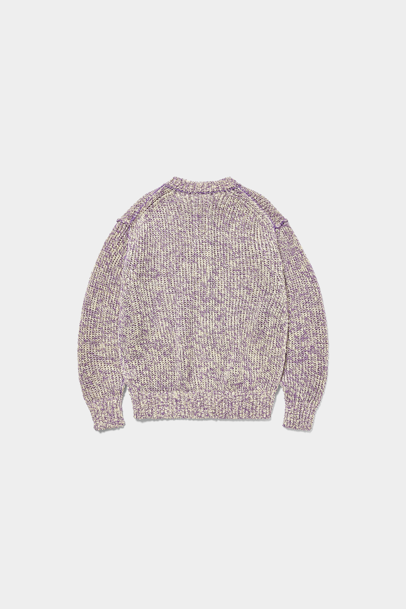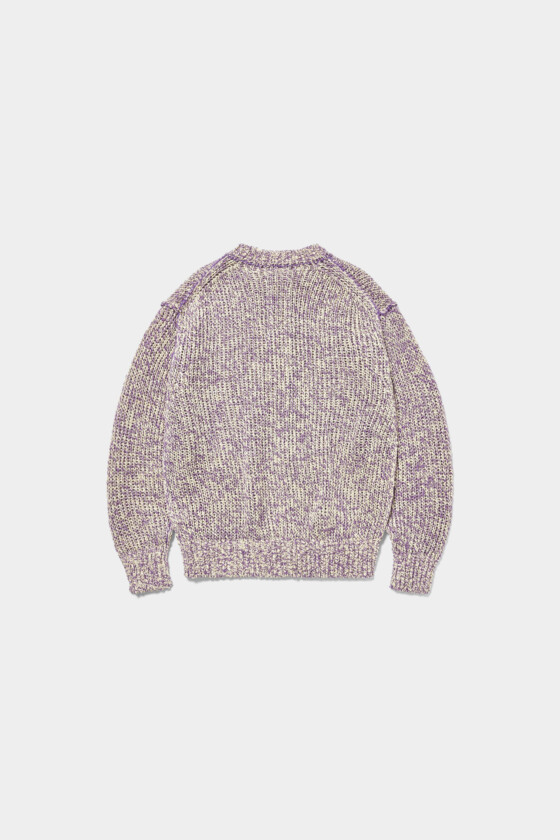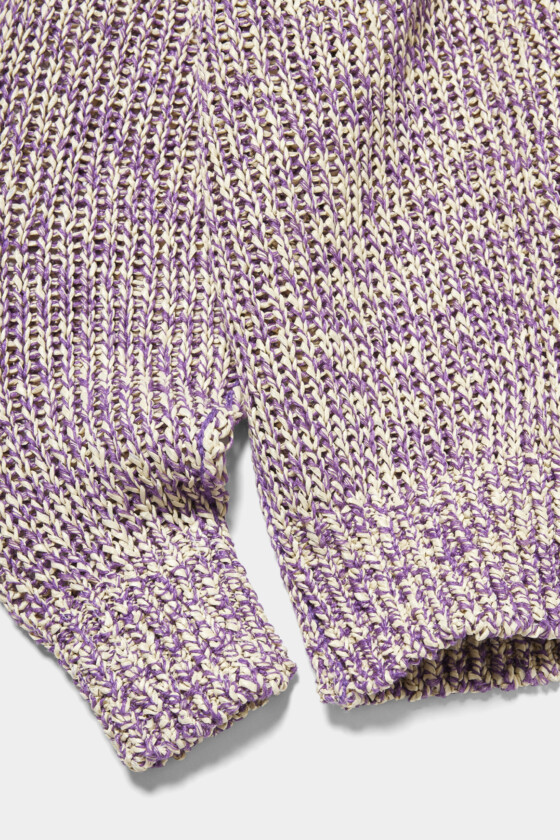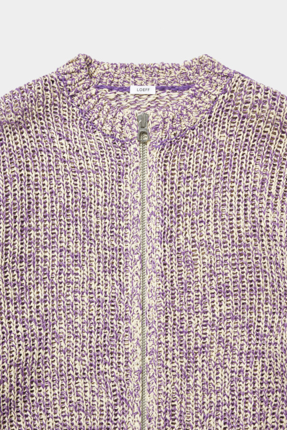ライトパープルが軽やかな〈LOEFF〉の編み込みカーディガン。急に冷え込む春先にあると便利な一着です。(AfterParty)
