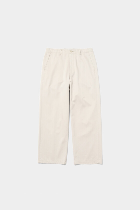 ミリタリー由来の名作チノパンを、今の気分にアップデート。ヴィンテージに比べて素材にほどよい光沢があり、きれいめなスタイリングにも合わせやすい。野暮ったさを感じさせないのもポイント。潔くタックインして、ハンサムに。(AfterParty)