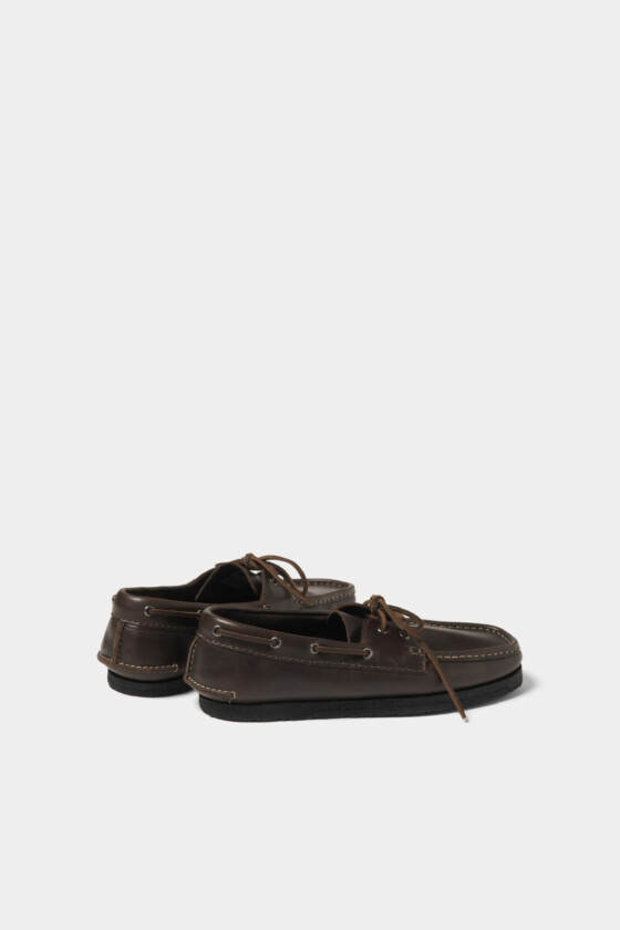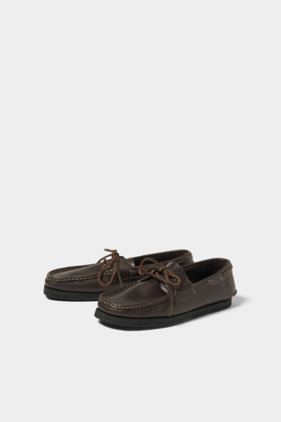 〈クラークス〉のデッキシューズ。どこが〈クラークス〉?と思ってよく見てみたら、トゥ部分にワラビーシューズの面影が!伝説のスナップ写真集TAKE IVYよろしく、白ソックスとのコンビネーションで毎日ガシガシ履いてください。(AfterParty)