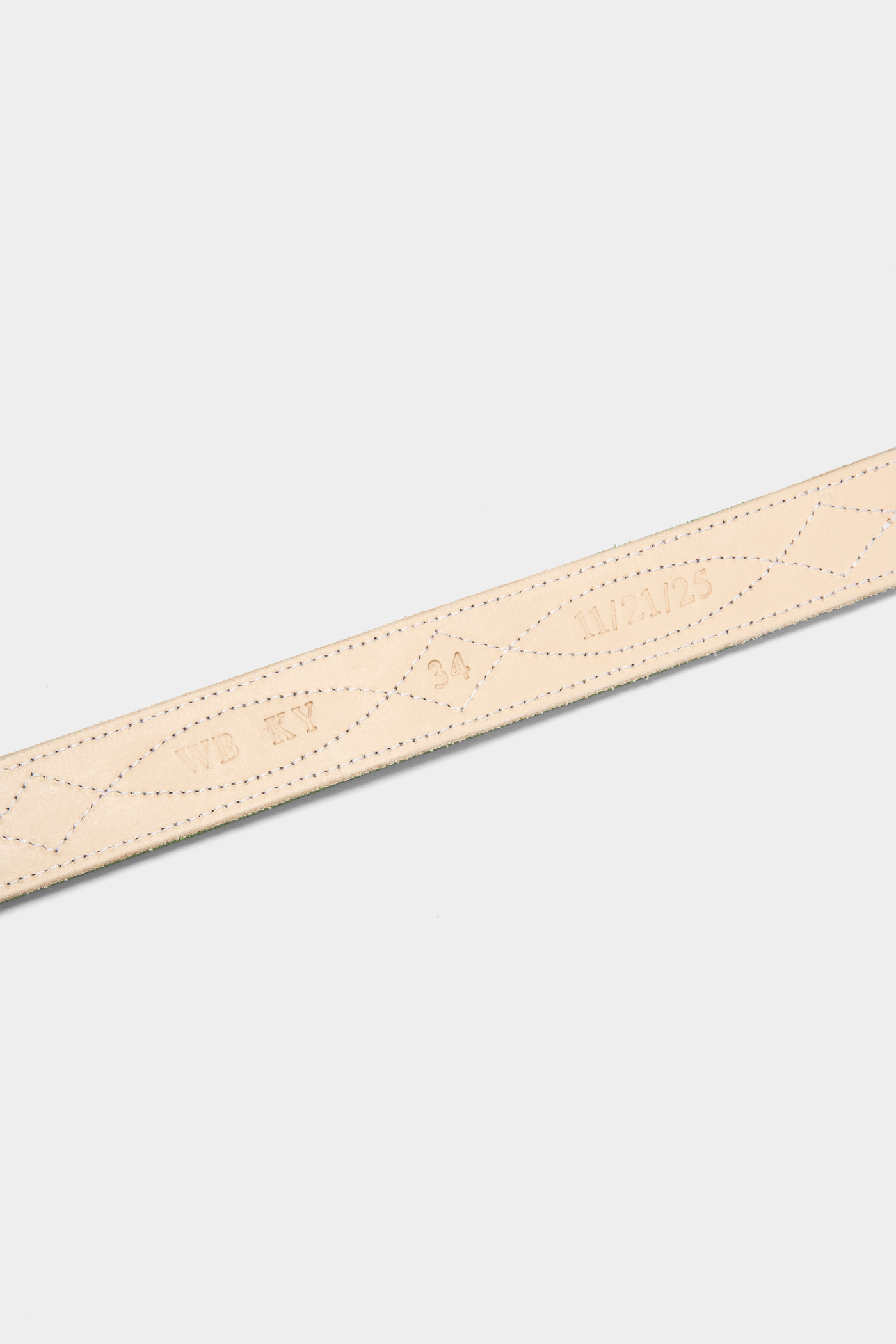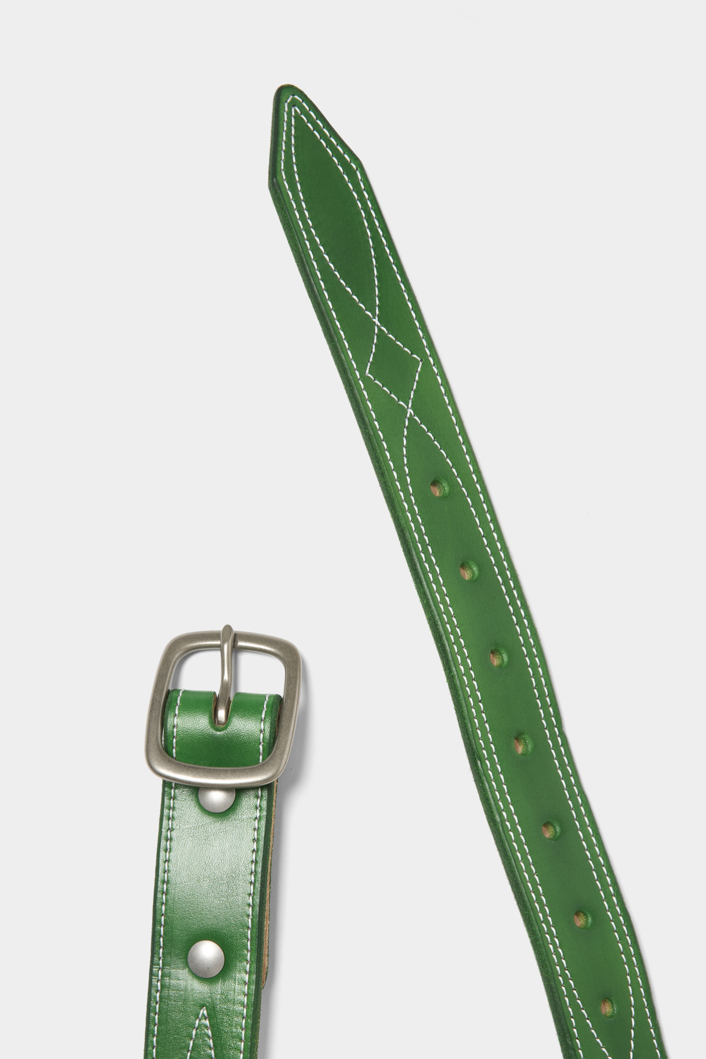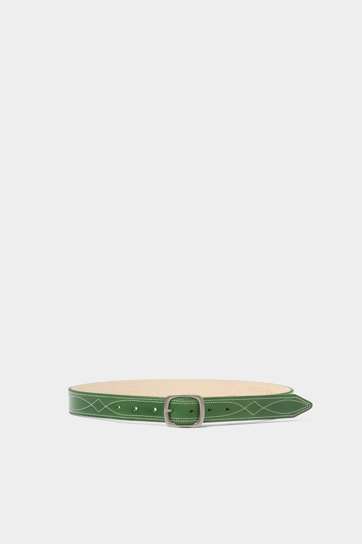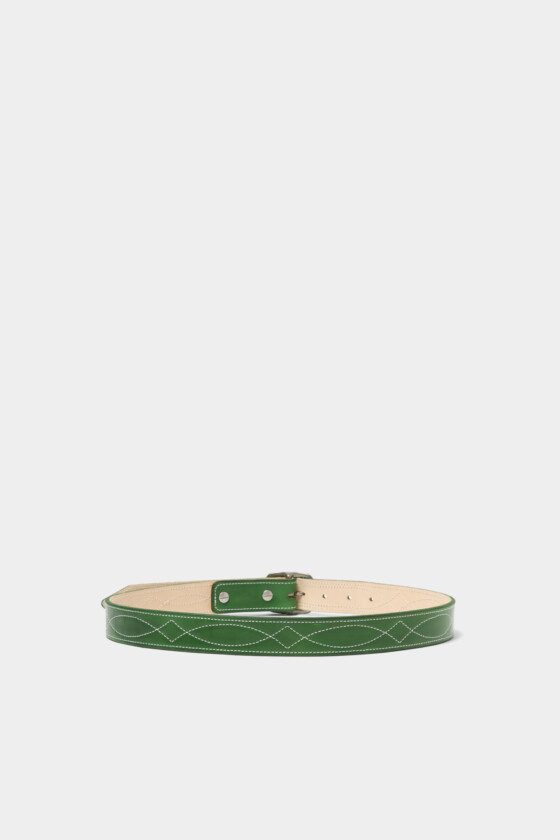 〈スティーブン アラン〉が別注した〈ウィリアムバーク〉のシグネチャーベルトは、鮮やかなグリーンが目を惹きながらも落ち着いた印象を残す。真鍮製のハードウェアも手作業でカットされた正真正銘のメイド・イン・アメリカ。さりげなく個性を演出するなら、ベルトも一手。(AfterParty)