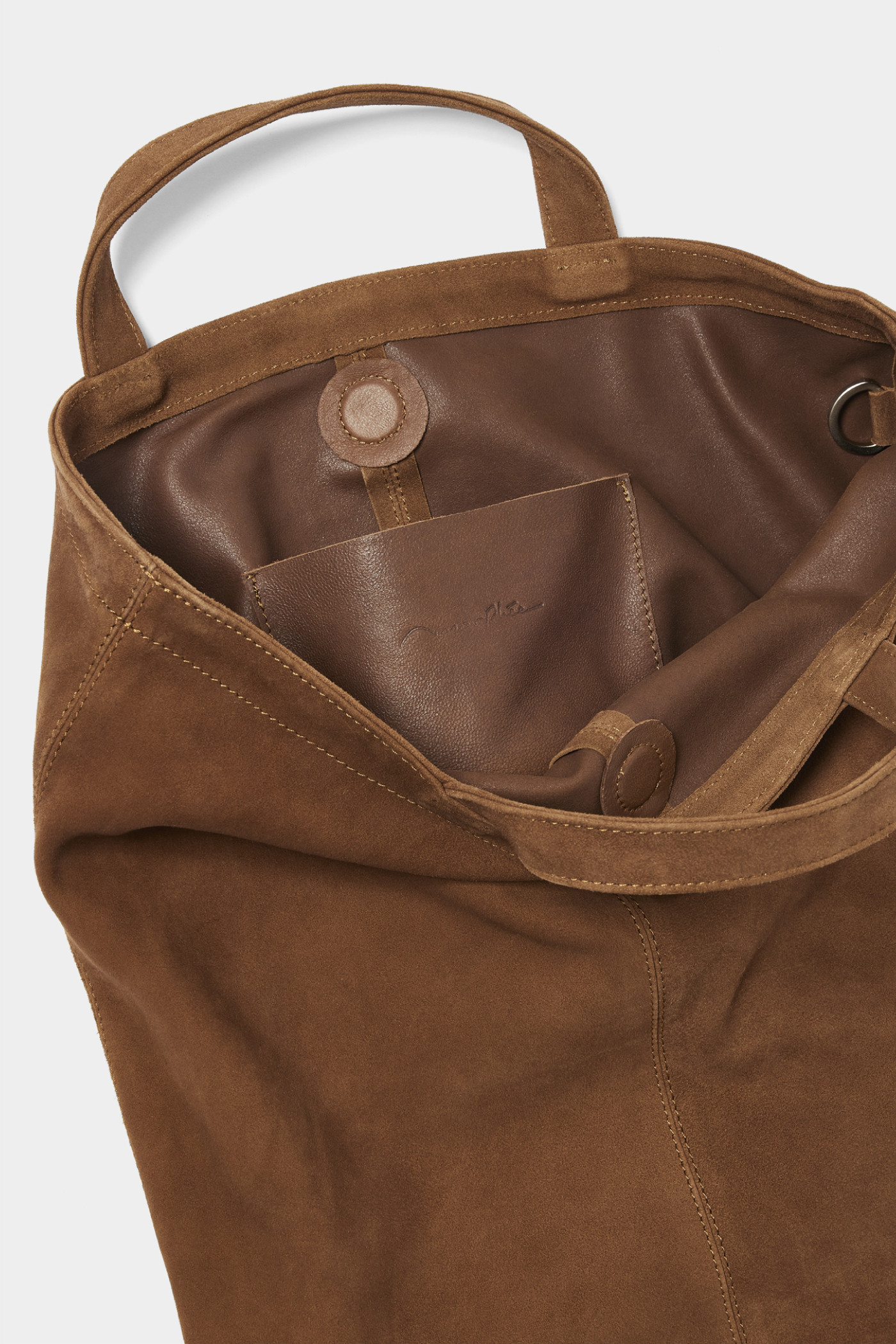 軽快な春夏のスタイリングに掛け合わせるスエードの重厚な質感。そのまま手提げにするのはもちろん、あえて小脇に抱えれば一気に旬なスタイリングに。(AfterParty)