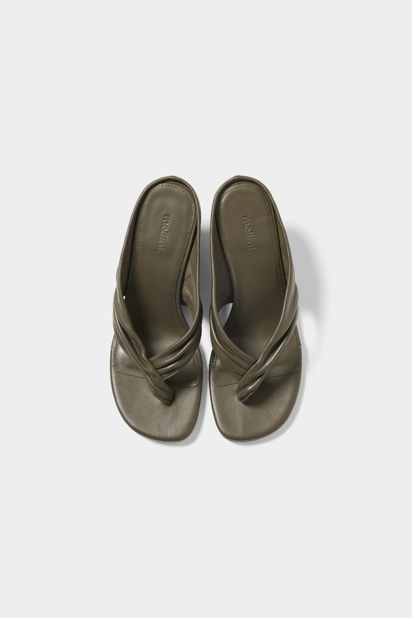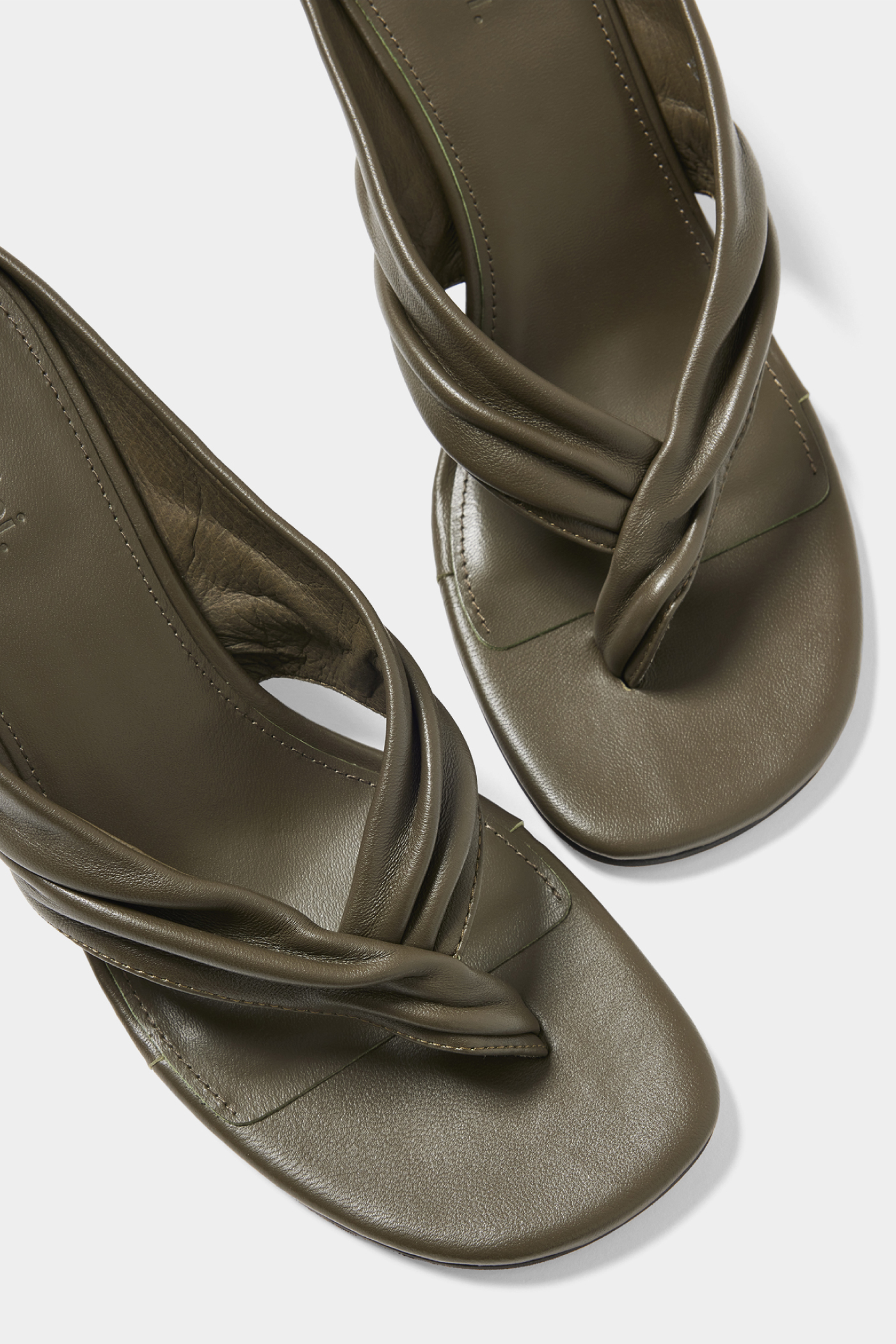 ヒールの形がユニーク。アッパーになんとなく下駄の鼻緒みたいな和の雰囲気を感じます。(Miyu)