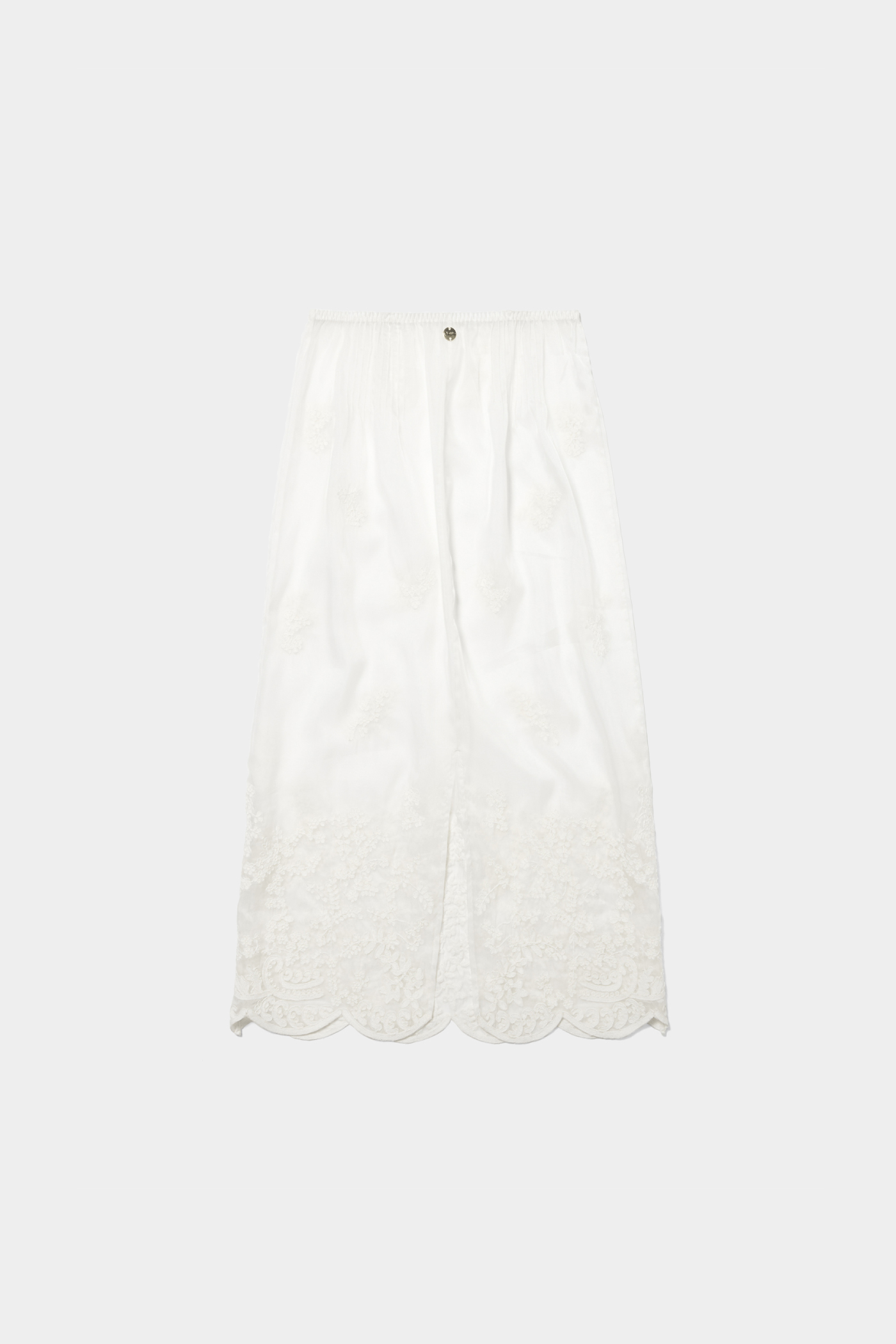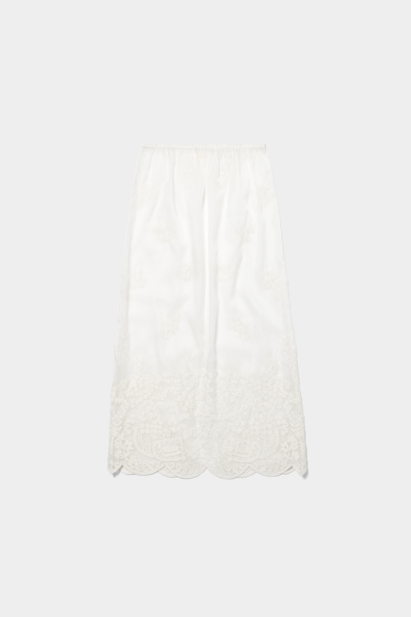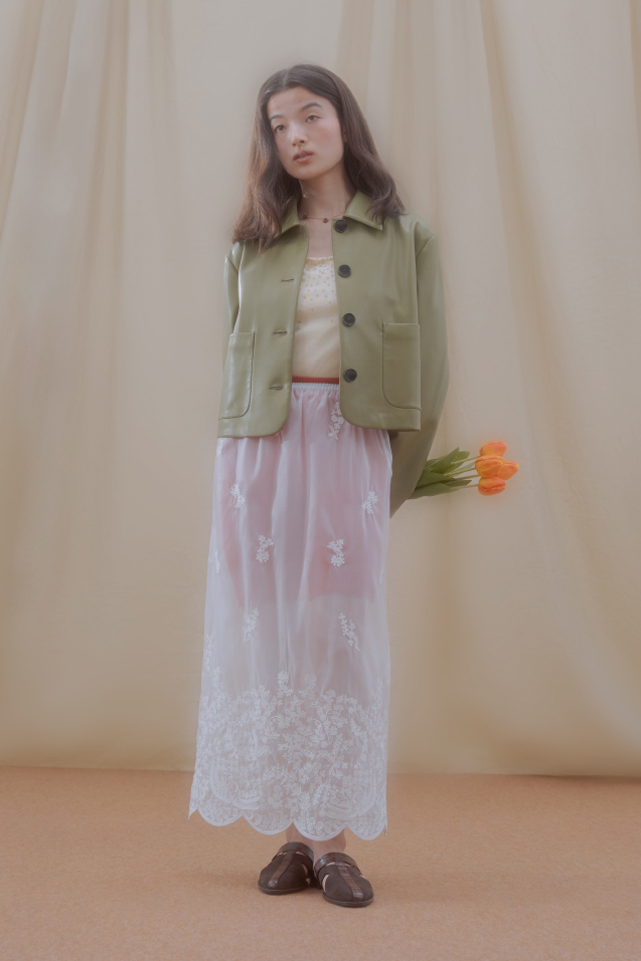 レギンスやパンツなど、どんなボトムとも合わせやすいシアー素材のスカート。軽やかに透ける質感がレイヤードスタイルに抜け感をつくってくれるので、シーズンレスで活躍しそう!刺繍は主張しすぎず、動くたびにさりげなく表情が出るのがキュート。甘くなりすぎず、清潔感のある印象にまとまるので、大人のスタイリングにも自然になじみます。