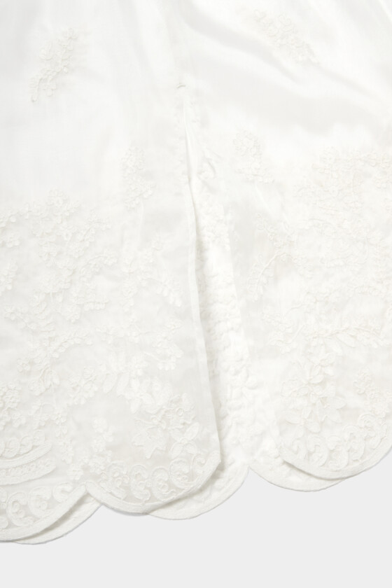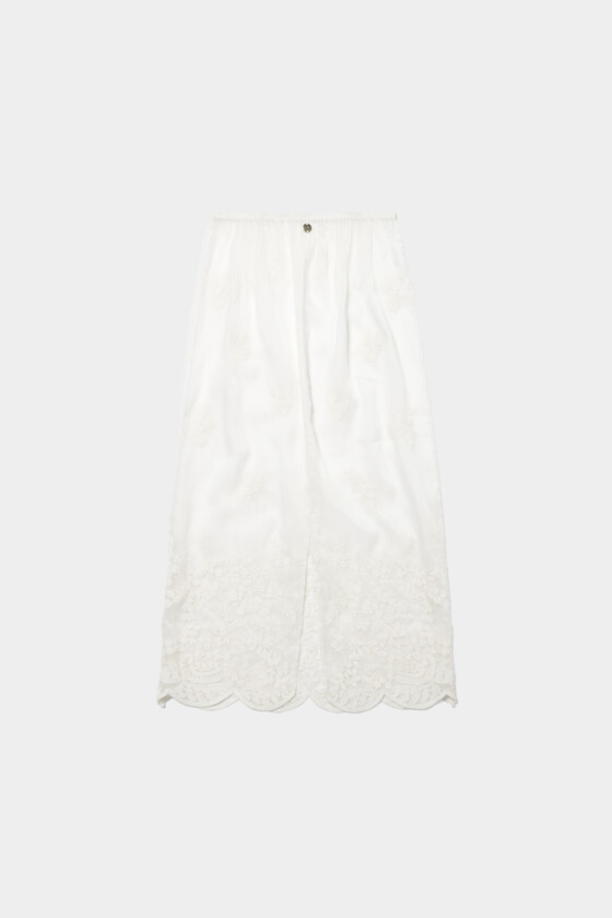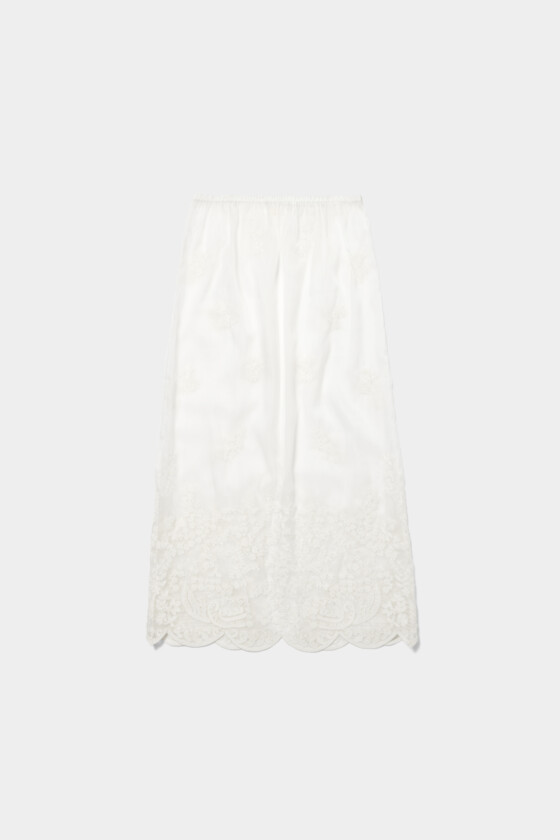 レギンスやパンツなど、どんなボトムとも合わせやすいシアー素材のスカート。軽やかに透ける質感がレイヤードスタイルに抜け感をつくってくれるので、シーズンレスで活躍しそう!刺繍は主張しすぎず、動くたびにさりげなく表情が出るのがキュート。甘くなりすぎず、清潔感のある印象にまとまるので、大人のスタイリングにも自然になじみます。