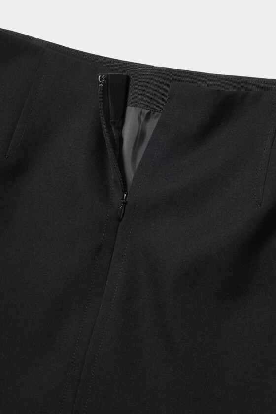 ミニマルなデザインのミニスカート。さりげなく漂うクラシックなムードが好みで、スタイリング次第で印象が大きく変わりそうだなと思って選びました。レギンスを合わせて少しモードに寄せたり、スカーフやシャツ、カーディガンをラフに巻くだけでも雰囲気が一変。気分やシーンに合わせて表情を変えられる、懐の深さがありますよね。
