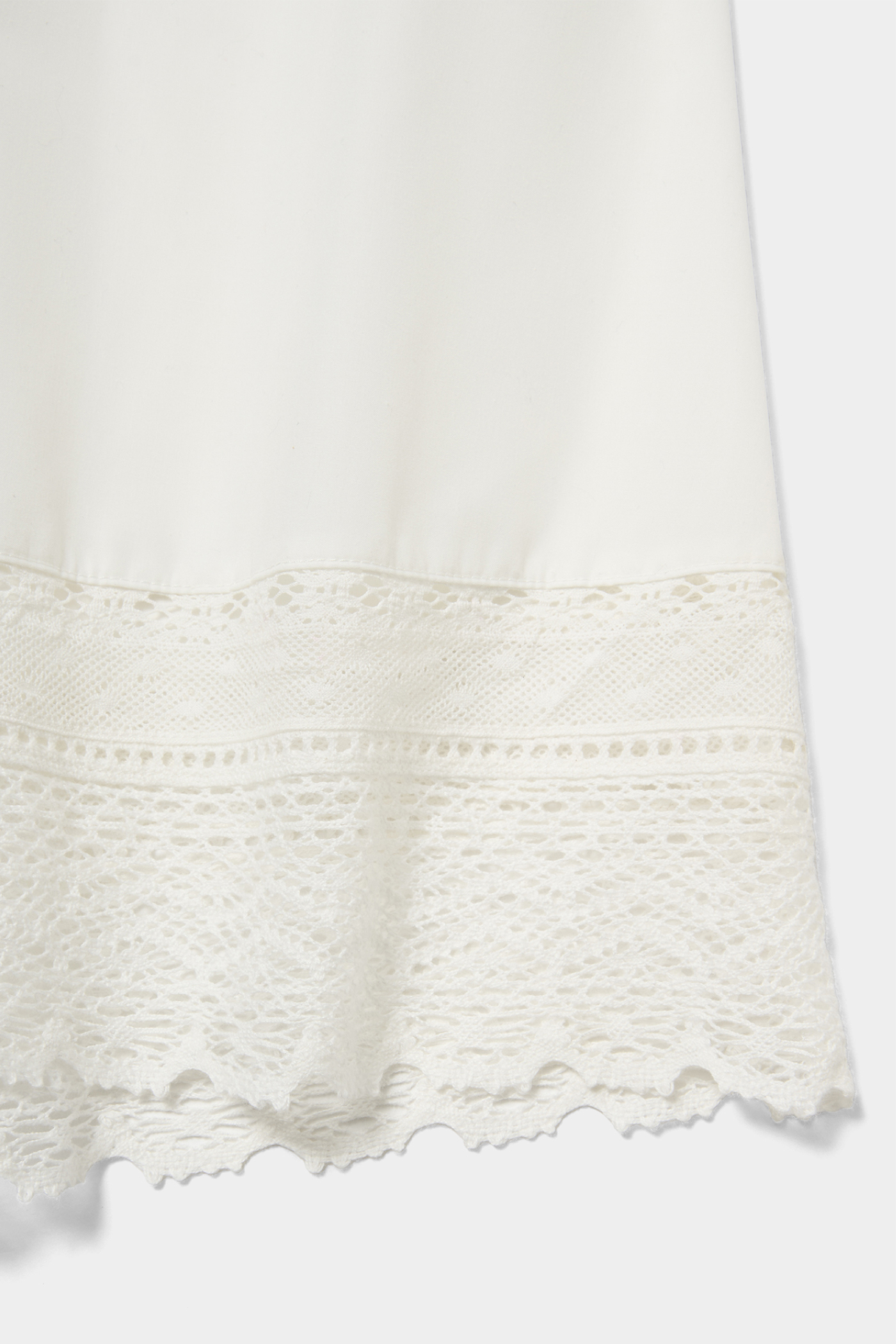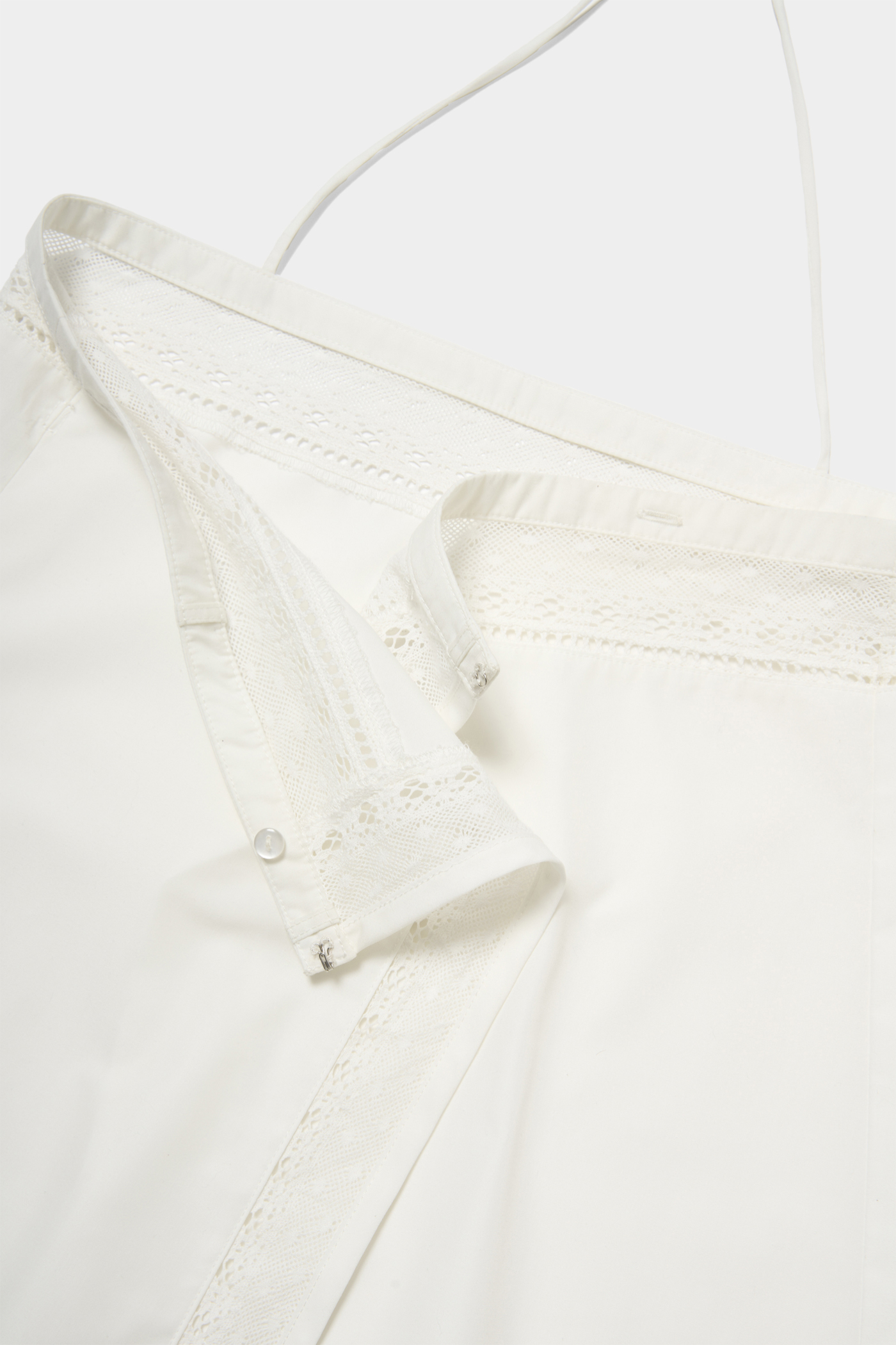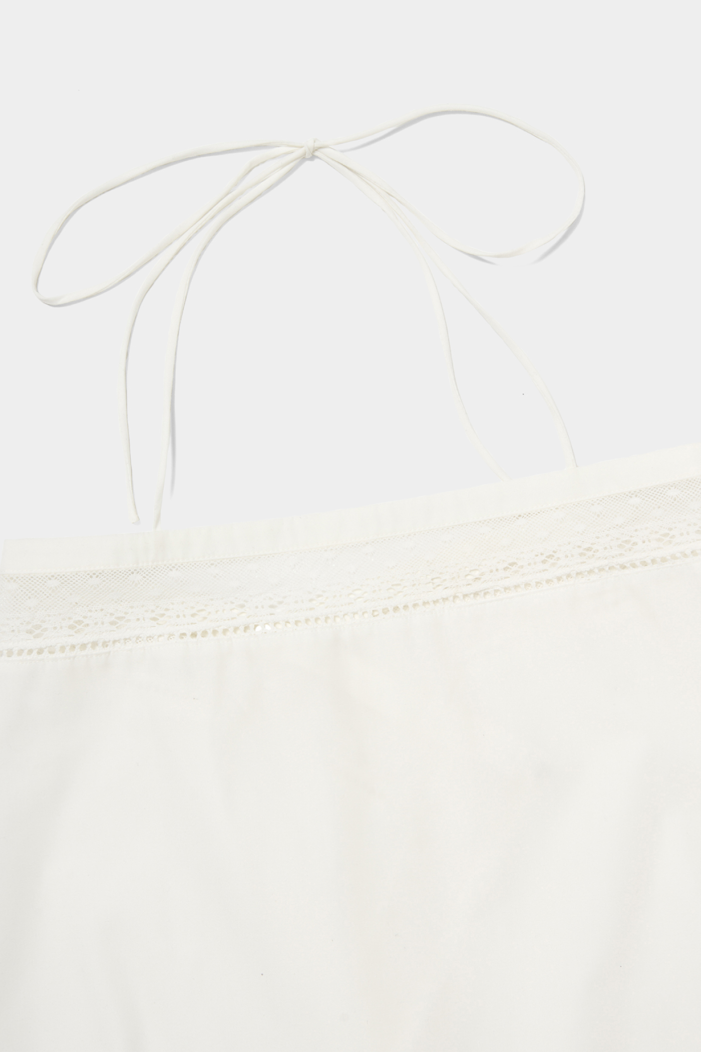 キャミソールワンピースとしてはもちろん、エプロンスカートとしても取り入れられる2WAYアイテム。クリーンでさらっとしたコットン素材が肌に心地よく、重ね着しても軽やかな印象です。どこか放牧的でのびやかなムードがあり、春夏のスタイリングに自然体の抜け感をプラス。シンプルなのに、着こなしの幅が広がるところがとても好きです。