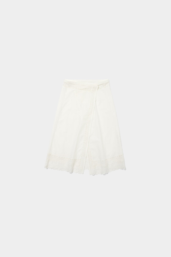 キャミソールワンピースとしてはもちろん、エプロンスカートとしても取り入れられる2WAYアイテム。クリーンでさらっとしたコットン素材が肌に心地よく、重ね着しても軽やかな印象です。どこか放牧的でのびやかなムードがあり、春夏のスタイリングに自然体の抜け感をプラス。シンプルなのに、着こなしの幅が広がるところがとても好きです。
