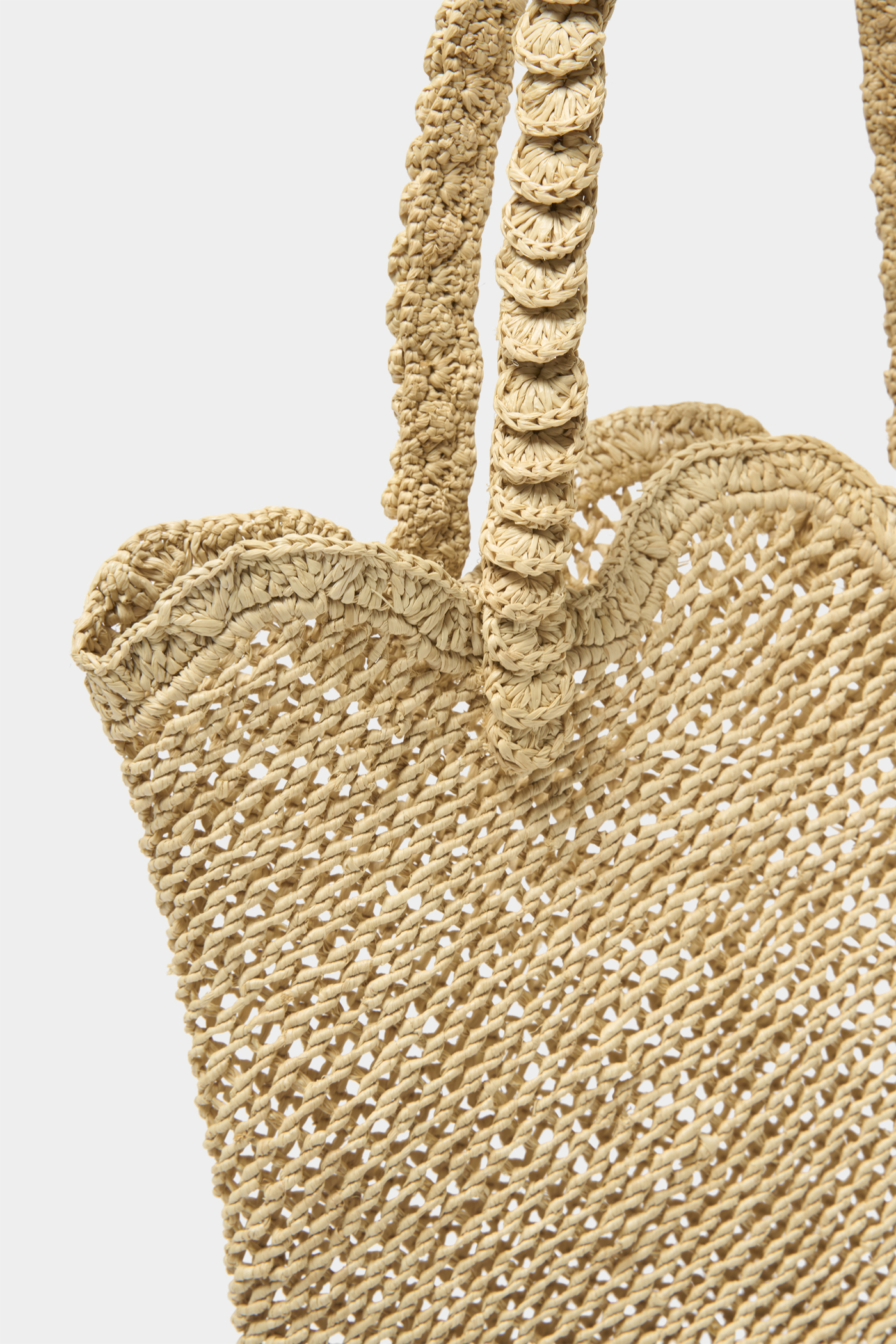 バゲットやサンドイッチを無造作に入れて、そのまま友だちに会いに行きたくなるようなバッグ。カゴバッグは存在感のある大ぶりなものが多い印象ですが、これは薄手で軽く、日常使いしやすいのが特徴。ほどよく力の抜けたサイズ感なので、気負わず持てるのもうれしい。柄がしっかり効いているからこそ、Tシャツやシャツなどのシンプルな装いに合わせて、スタイリングのアクセントとして取り入れたいなと思いました。