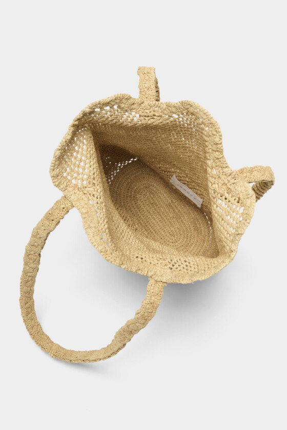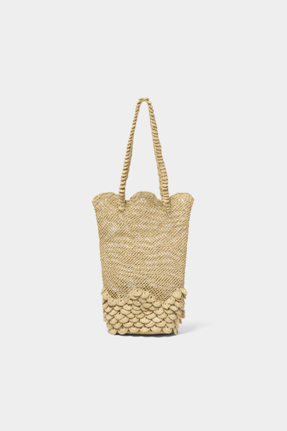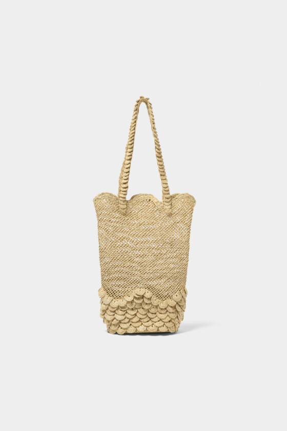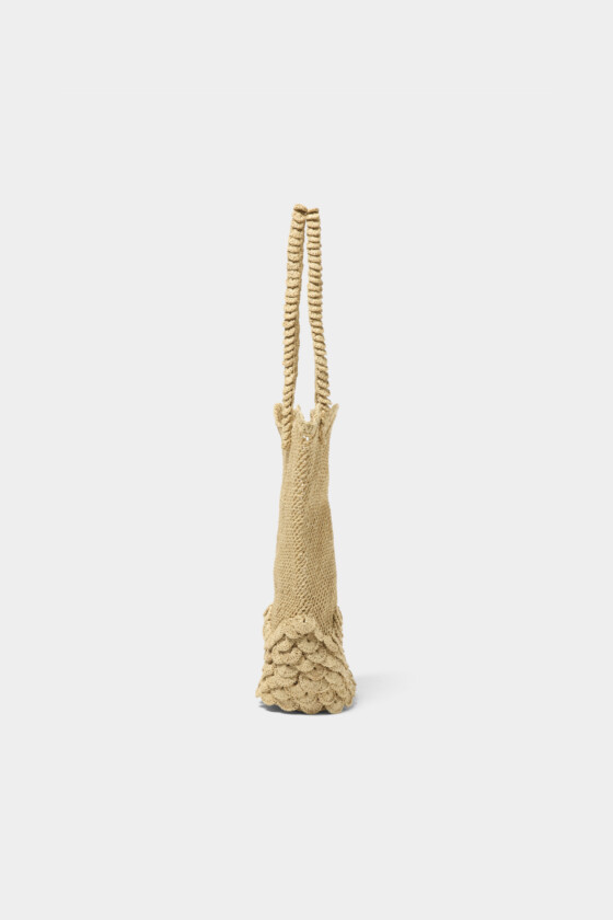 バゲットやサンドイッチを無造作に入れて、そのまま友だちに会いに行きたくなるようなバッグ。カゴバッグは存在感のある大ぶりなものが多い印象ですが、これは薄手で軽く、日常使いしやすいのが特徴。ほどよく力の抜けたサイズ感なので、気負わず持てるのもうれしい。柄がしっかり効いているからこそ、Tシャツやシャツなどのシンプルな装いに合わせて、スタイリングのアクセントとして取り入れたいなと思いました。