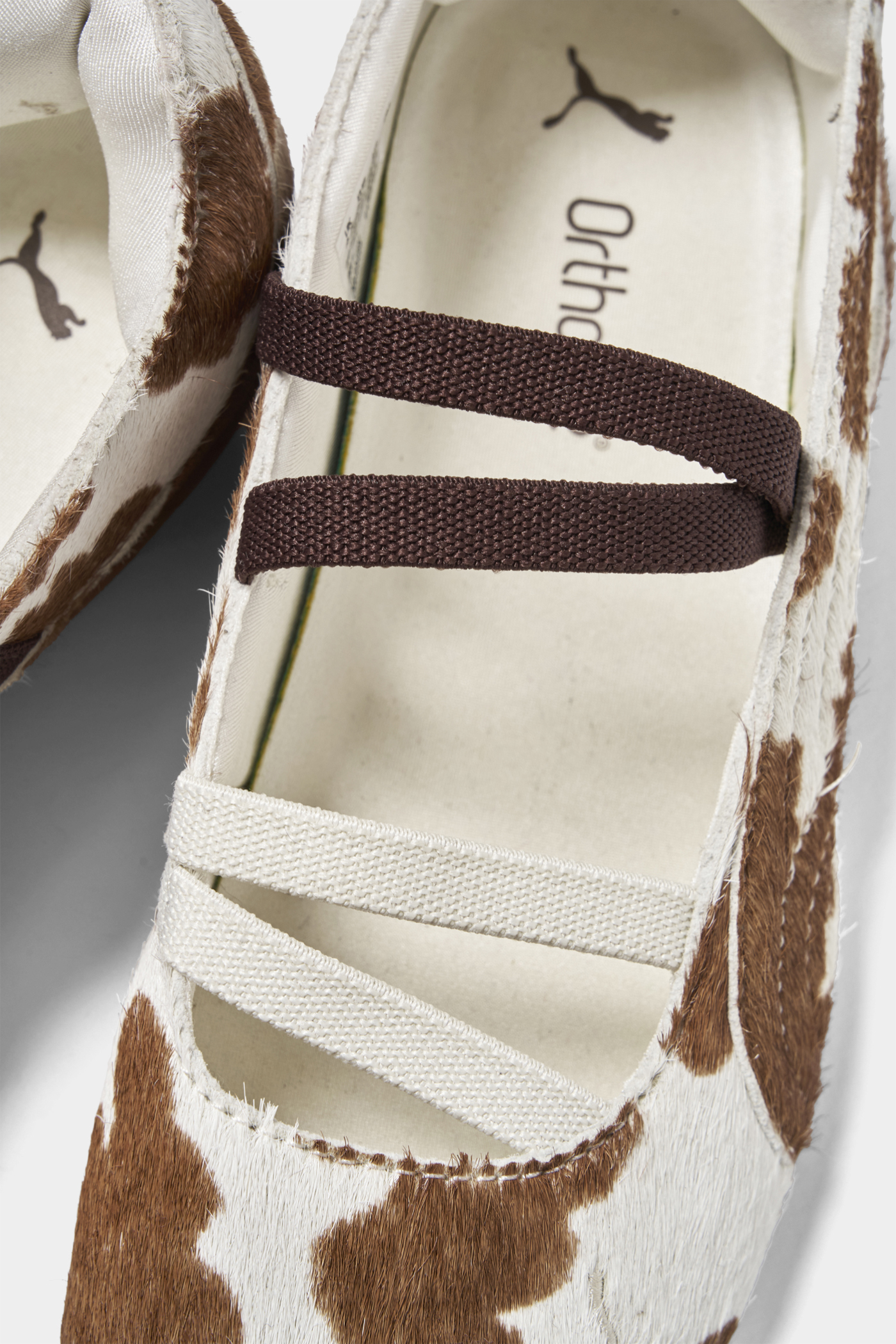 カジュアルなムードがありつつ、フラット特有の軽やかなフォルムがかわいい一足。淡いトーンのカウ柄なので主張しすぎず、普段のスタイリングにも自然に取り入れやすいのがいいなって思いました。甲に入ったストラップがさりげないアクセントになっていて、足元をきゅっと引き締めてくれるのもポイント。ラフだけど手抜きに見えないバランスが絶妙。