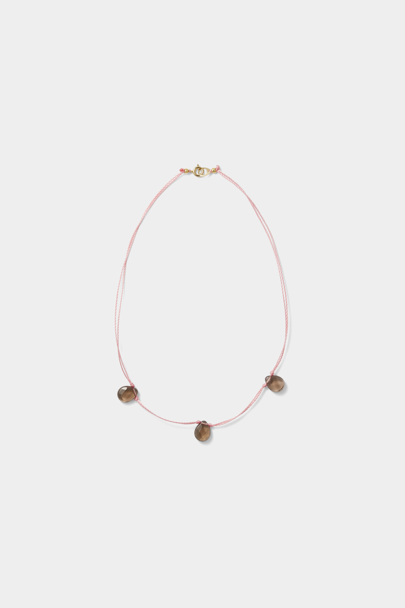 ピンクでも気負わず取り入れられる、軽やかなムードのアクセサリー。クリアなグレーのガラスパーツがコントラストになっていて、華奢な佇まいだけど、首元にしっかりとした存在感を添えてくれます。色違いを重ねづけしてもバランスよくまとまりそう。