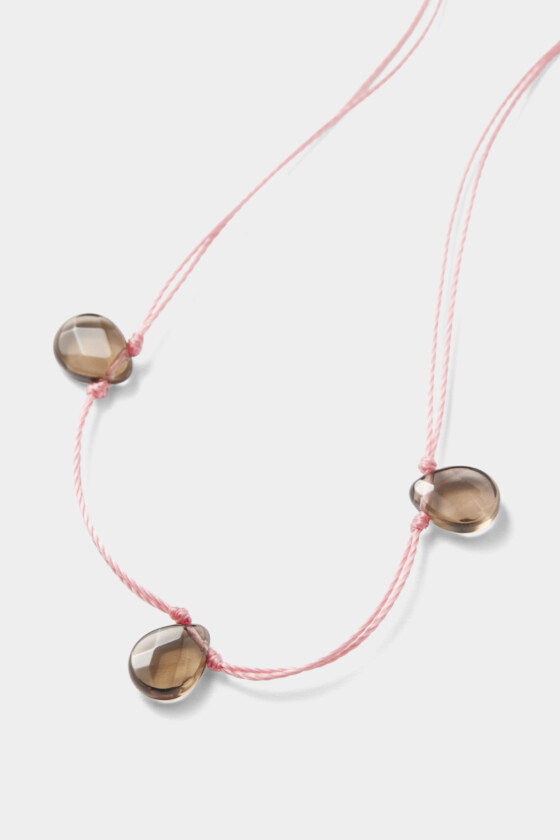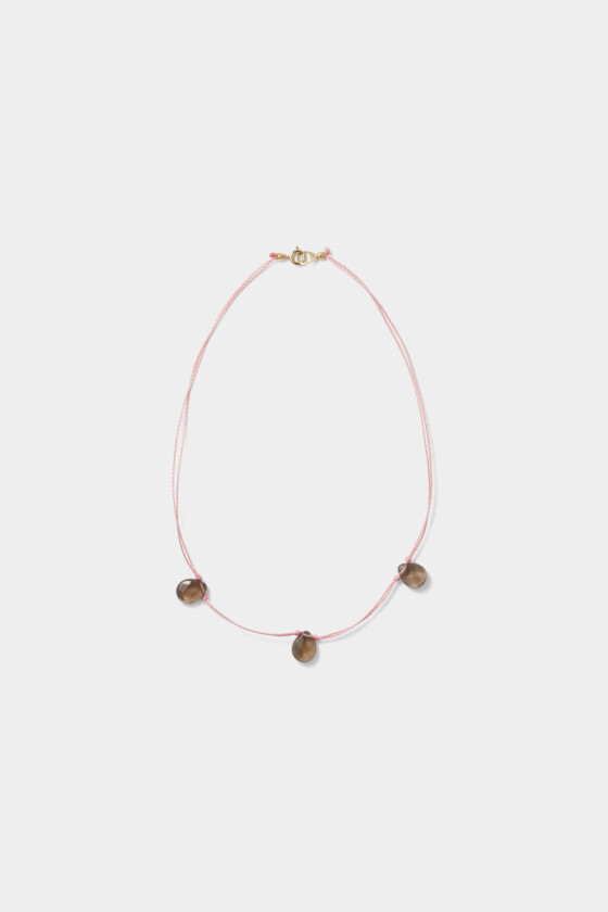 ピンクでも気負わず取り入れられる、軽やかなムードのアクセサリー。クリアなグレーのガラスパーツがコントラストになっていて、華奢な佇まいだけど、首元にしっかりとした存在感を添えてくれます。色違いを重ねづけしてもバランスよくまとまりそう。