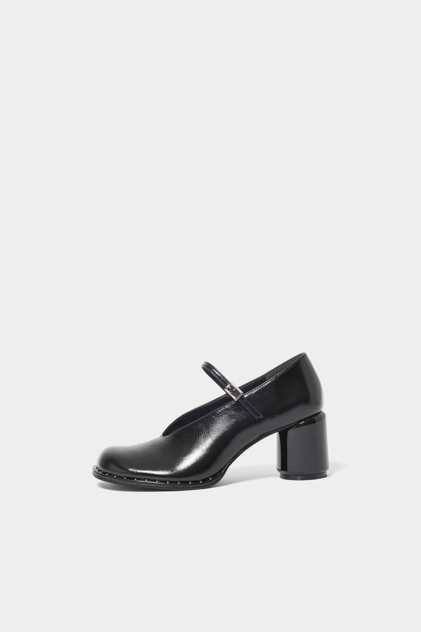トレンド感のあるオブリークトゥにメリージェーンのデザインを落とし込んだパンプス。バックシルエットや足の甲がすっきりと見えるカットラインが美しく、円形のヒールで歩きやすいところも魅力のひとつ。