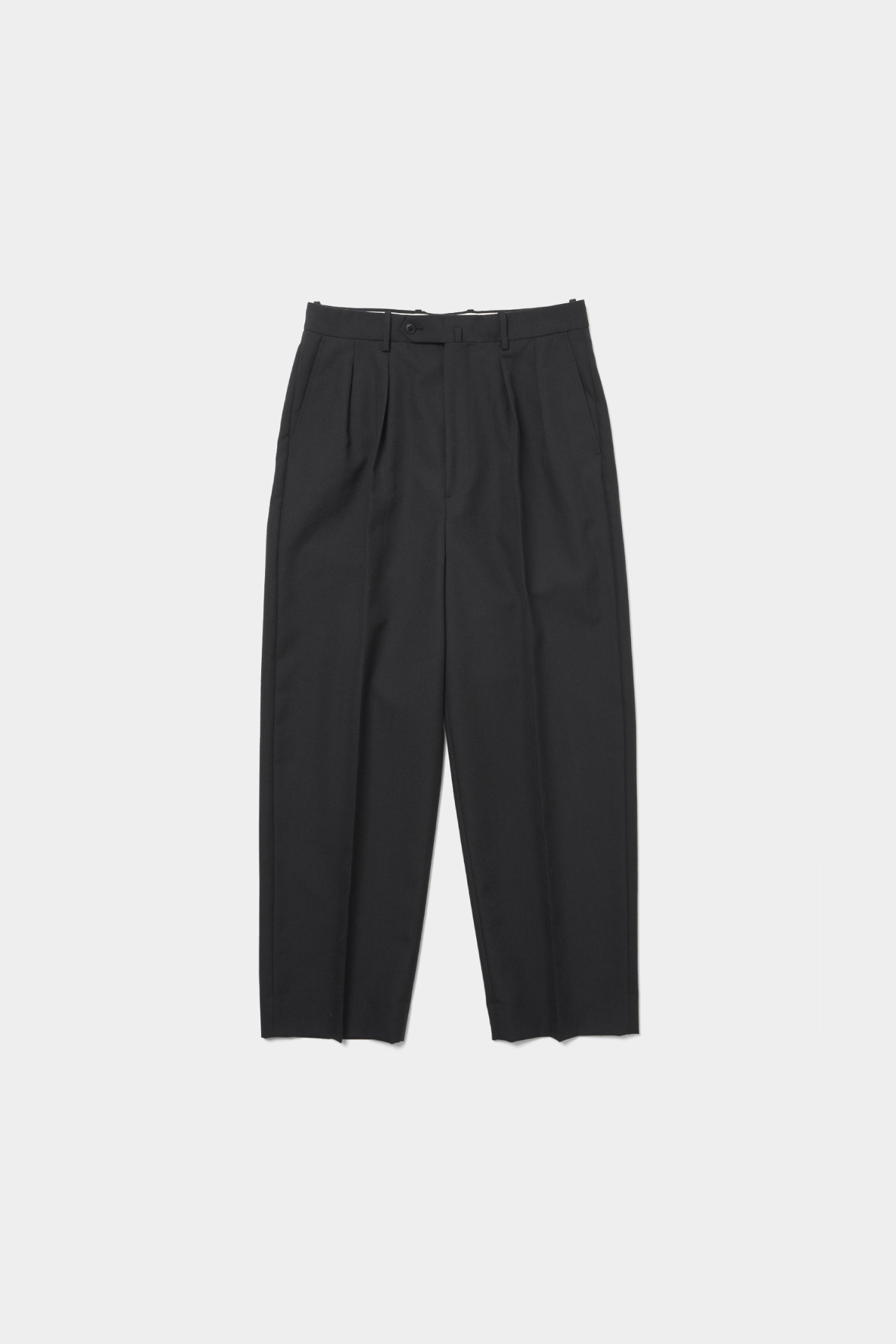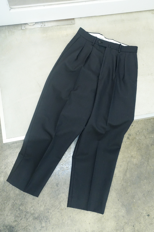 ドレス仕立てのデザインで、シンプルながら細部にまでこだわったスラックス。インプリーツデザインですっきりとしたシルエットを叶えてくれる。ハリと光沢感のあるテキスタイルがより洗練された印象に。