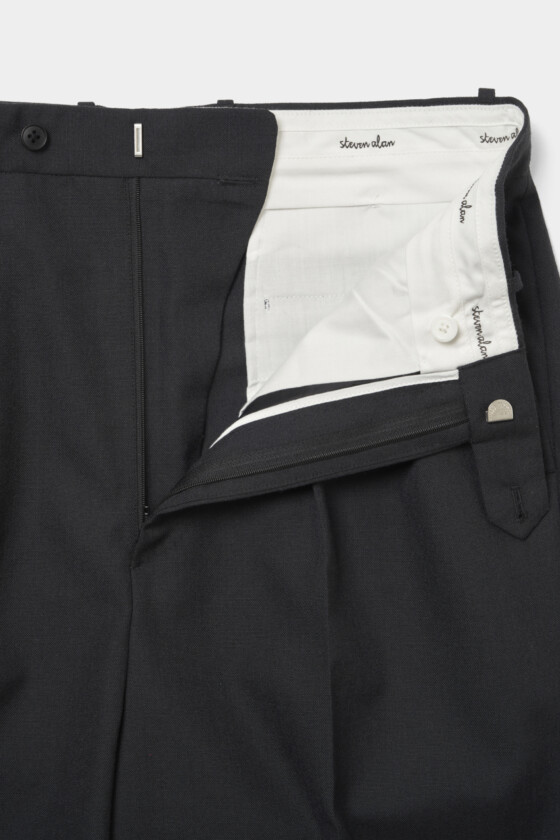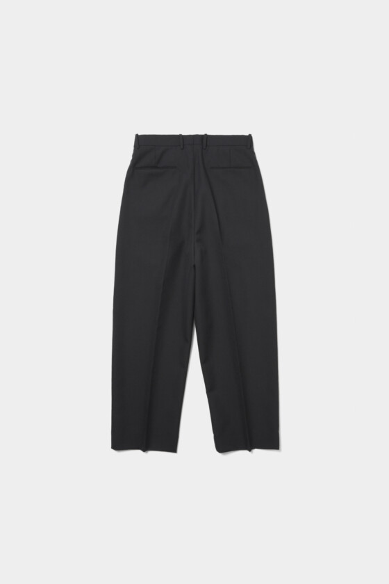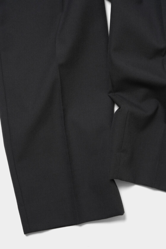 ドレス仕立てのデザインで、シンプルながら細部にまでこだわったスラックス。インプリーツデザインですっきりとしたシルエットを叶えてくれる。ハリと光沢感のあるテキスタイルがより洗練された印象に。