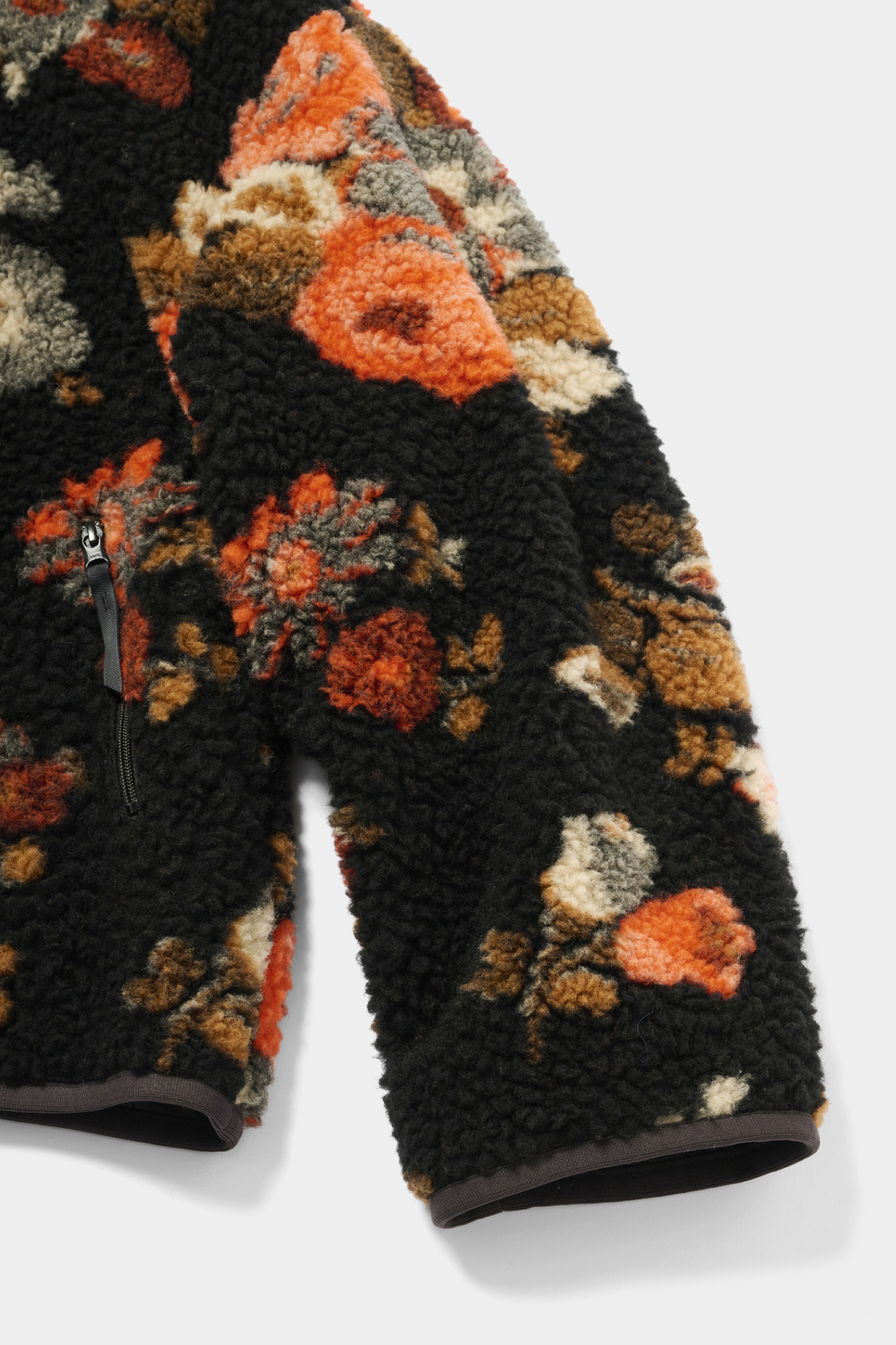 ボアジャケットってカジュアルに映りがちですが、絶妙な色使いや花柄のあしらい方で唯一無二の顔立ちに