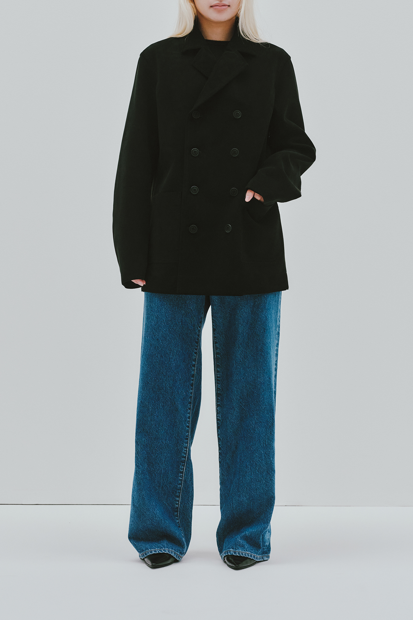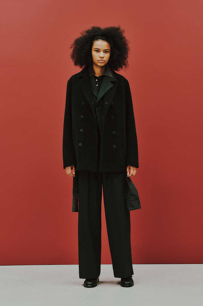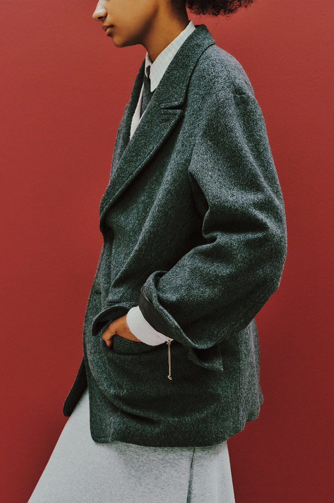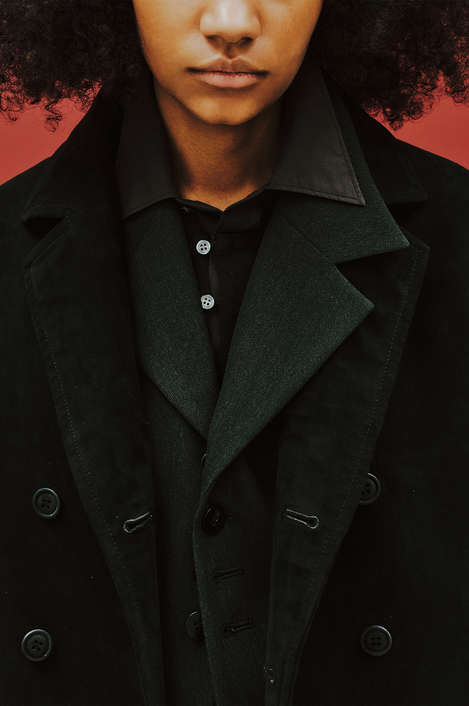 なめらかで肌触りのいいスエードライクな質感で、リュクスなムードを作ってくれるピーコートは一枚で主役を張れる存在感。適度な厚みで肌寒くなる秋口からの着用を叶え、ロングシーズンで取り入れることができるのもポイント。深みのある色味と端正な佇まいで、カジュアルなスタイルにも奥行きを与えてくれる。