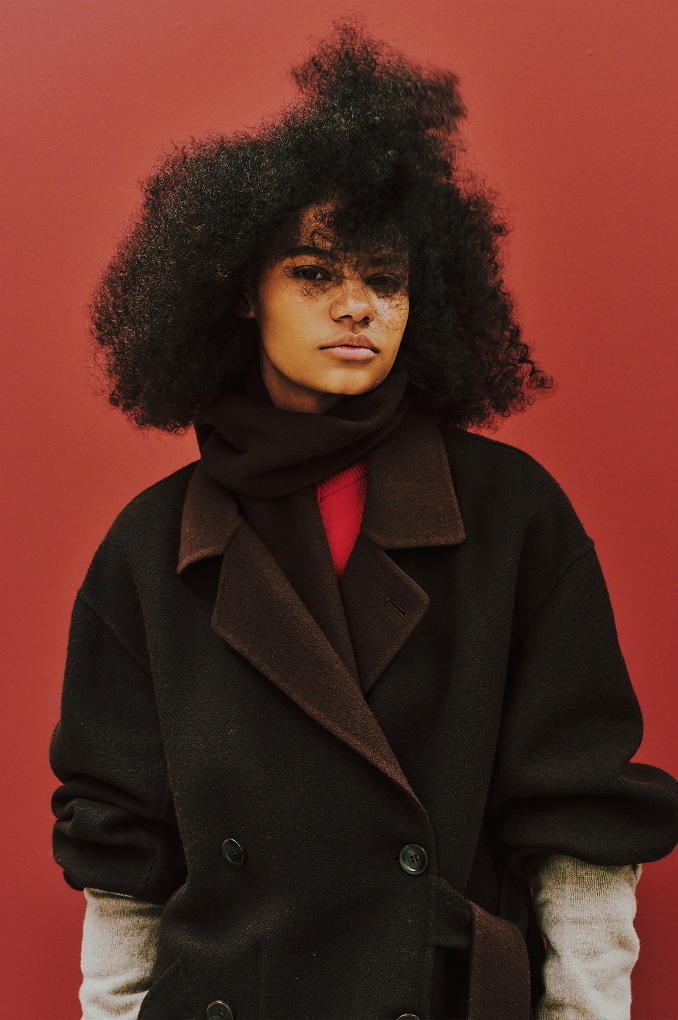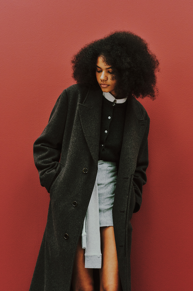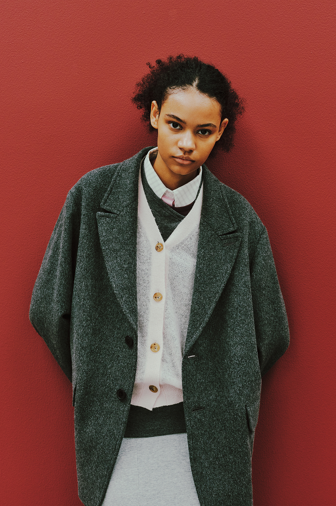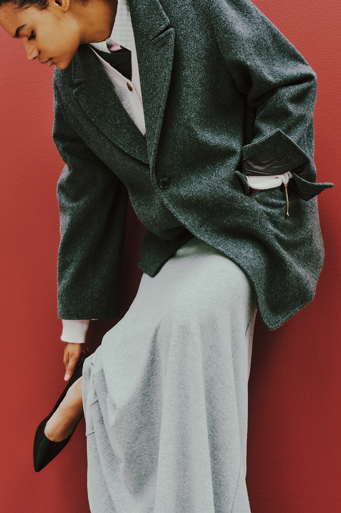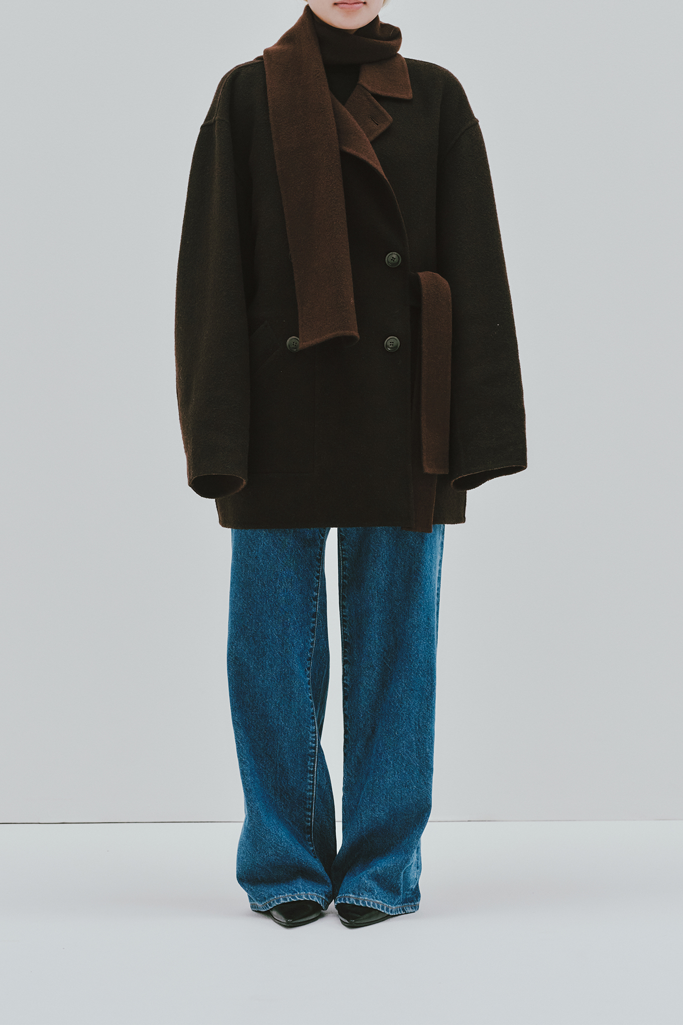 なめらかで肌触りのいいスエードライクな質感で、リュクスなムードを作ってくれるピーコートは一枚で主役を張れる存在感。適度な厚みで肌寒くなる秋口からの着用を叶え、ロングシーズンで取り入れることができるのもポイント。深みのある色味と端正な佇まいで、カジュアルなスタイルにも奥行きを与えてくれる。