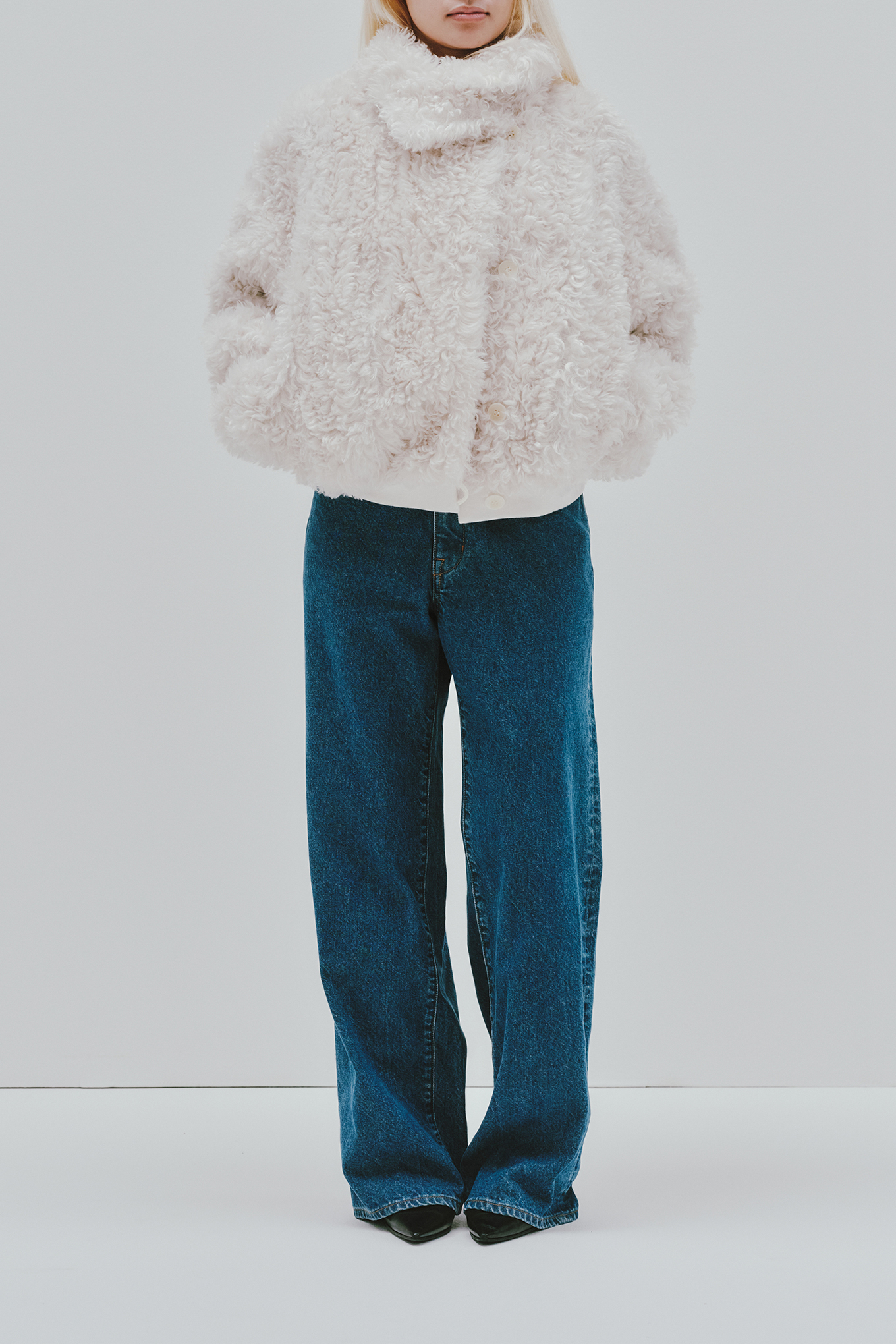 ふわふわと包まれるようなボリューム感で幅広いスタイルに愛されるブルゾン。程よく短丈で、袖と裾のタイトめなリブが甘さを引き締める。カーリーで動きのあるフェイクファーで軽やかに仕上げ、カジュアルにもトラッドにもさまざまなスタイルに馴染む。