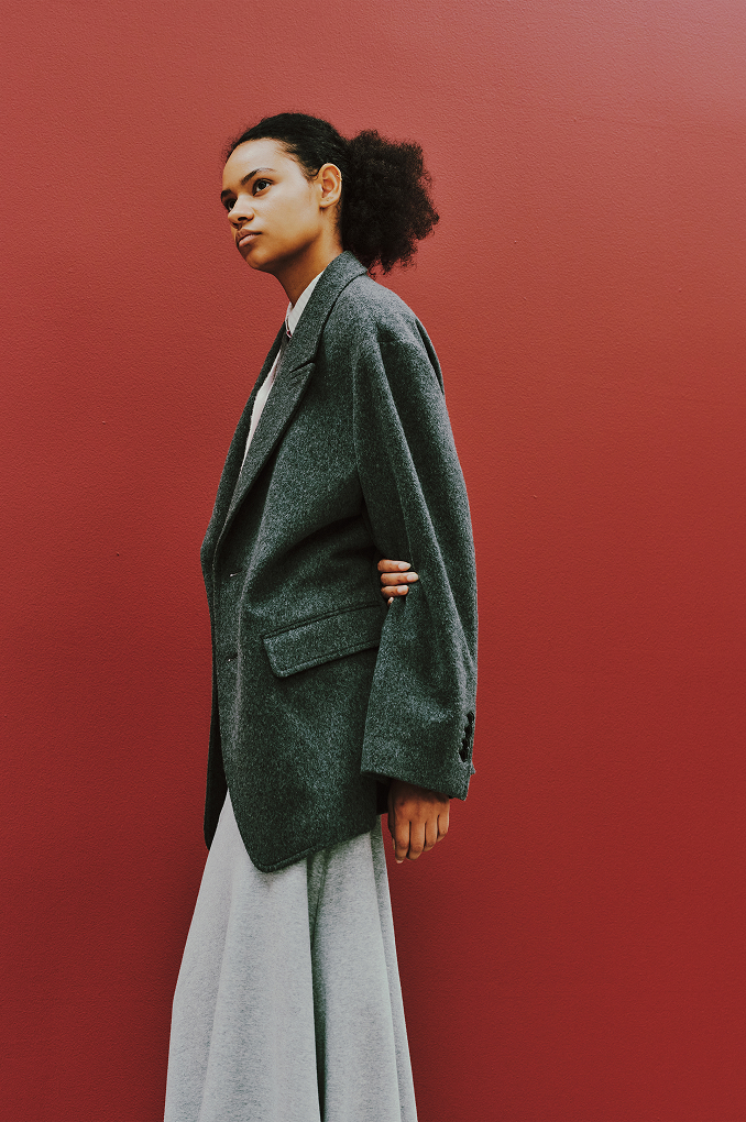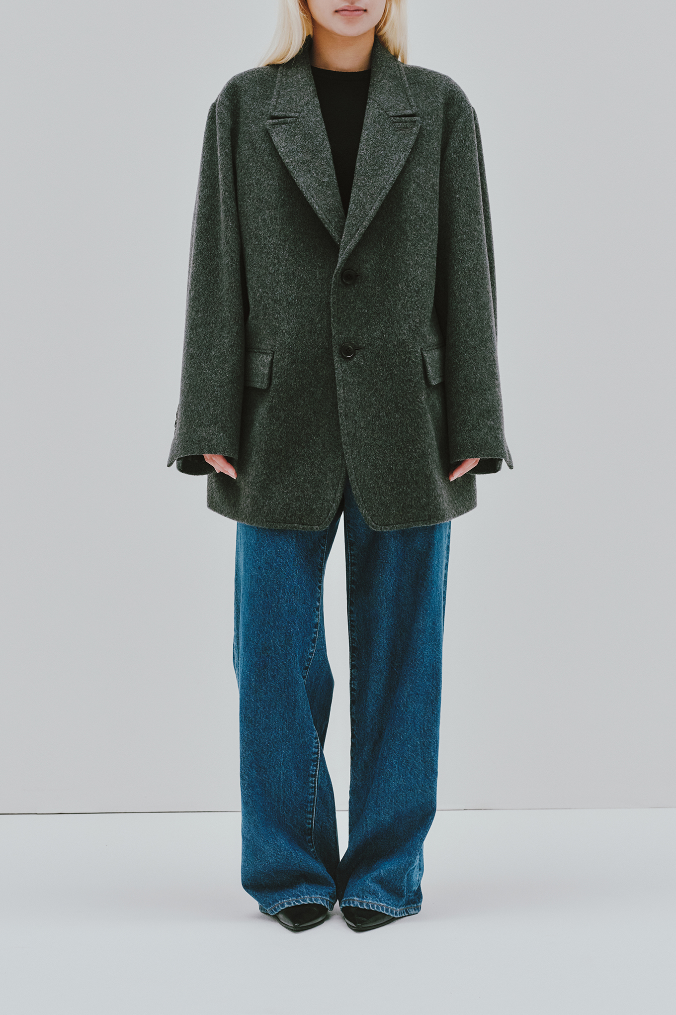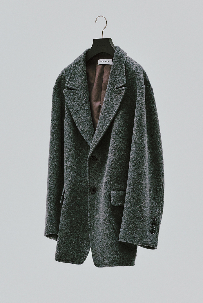 昨年も人気を博した、メンズライクでフォーマルなデザインが魅力のビッグコートジャケット。今シーズンは身幅をやや細めにリサイズし、ラペル部分にはボタンをプラス。リラックスフィットながら適度なハリ感もあり、柔らかさとミニマルさが調和された一着。
