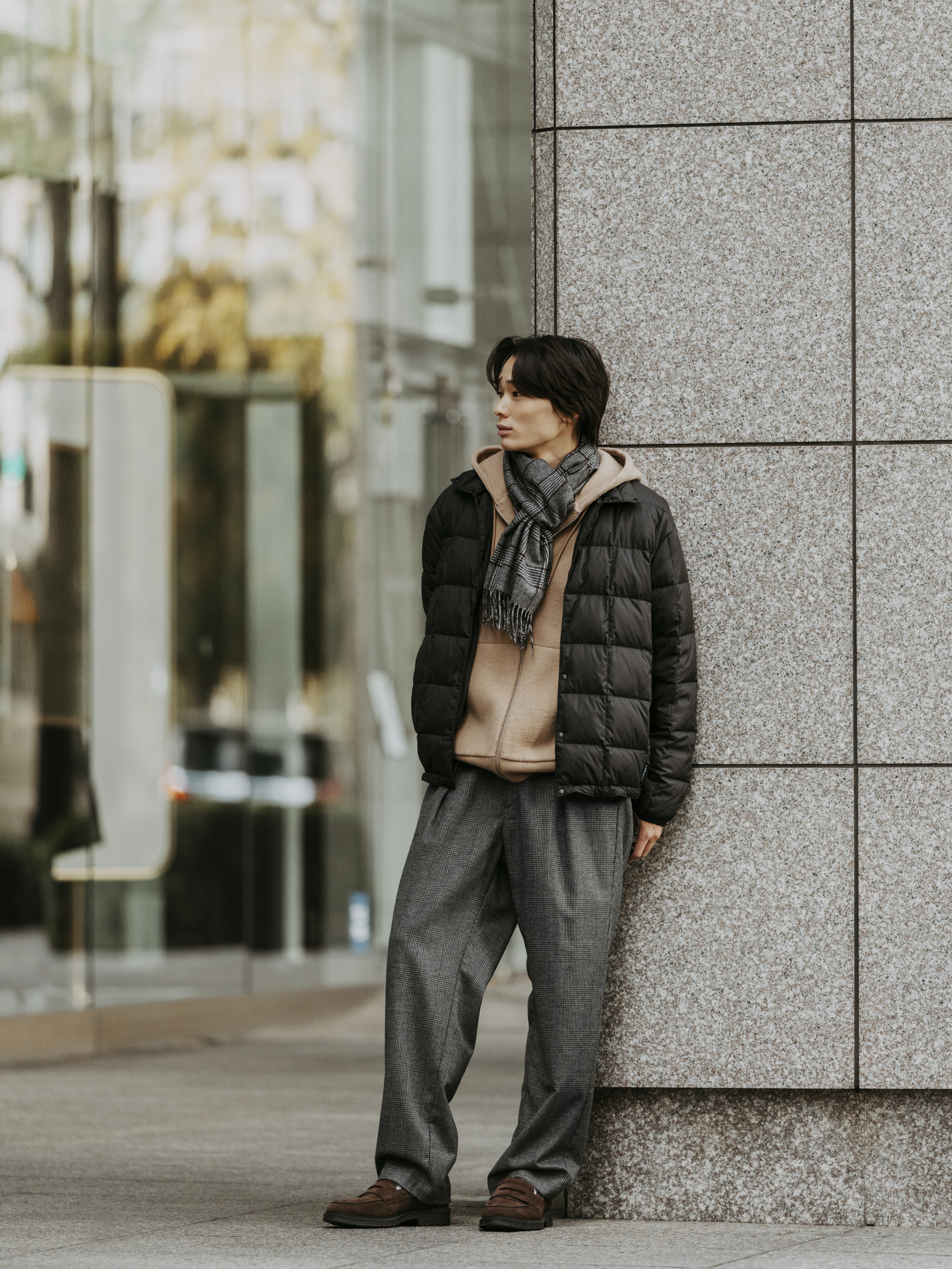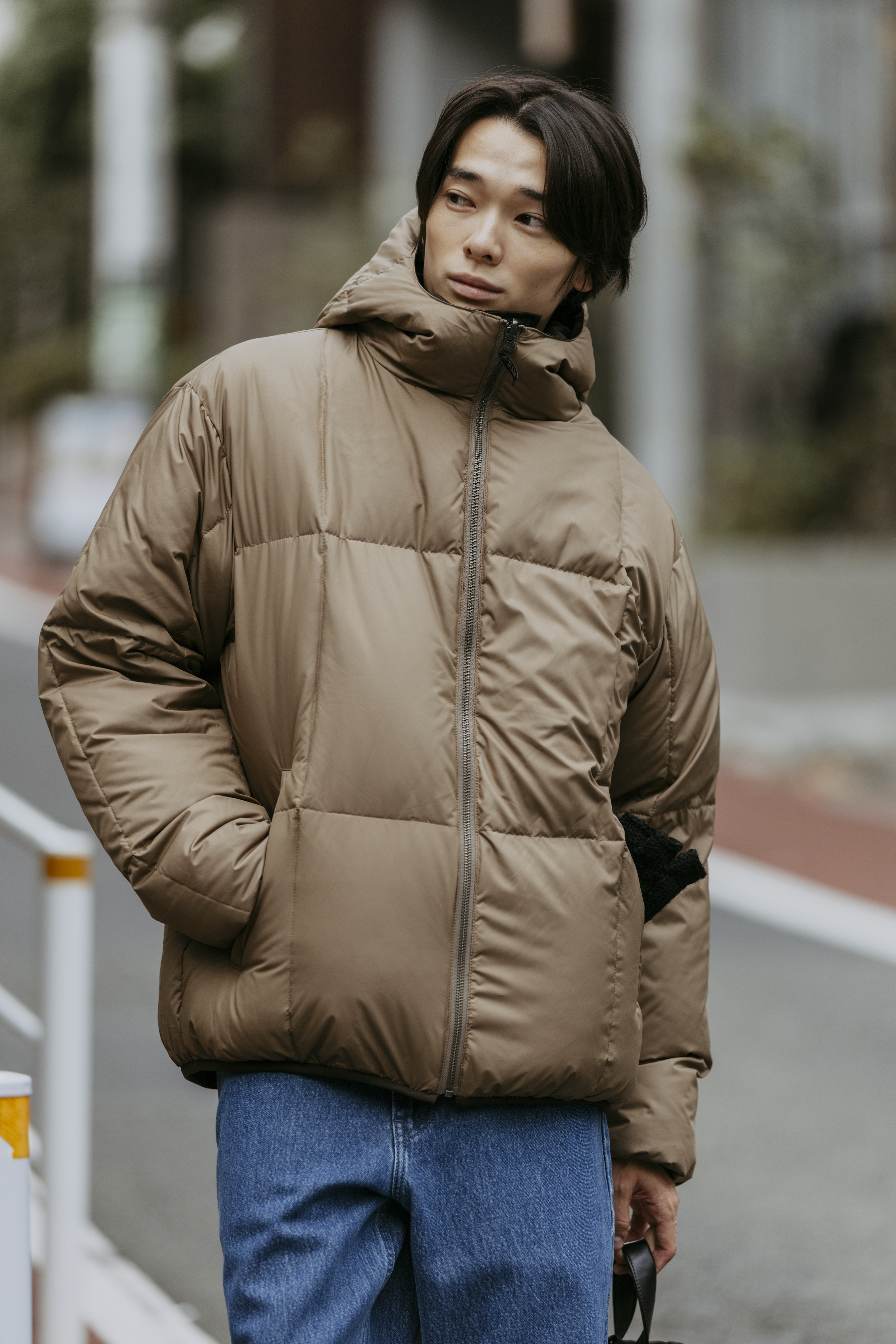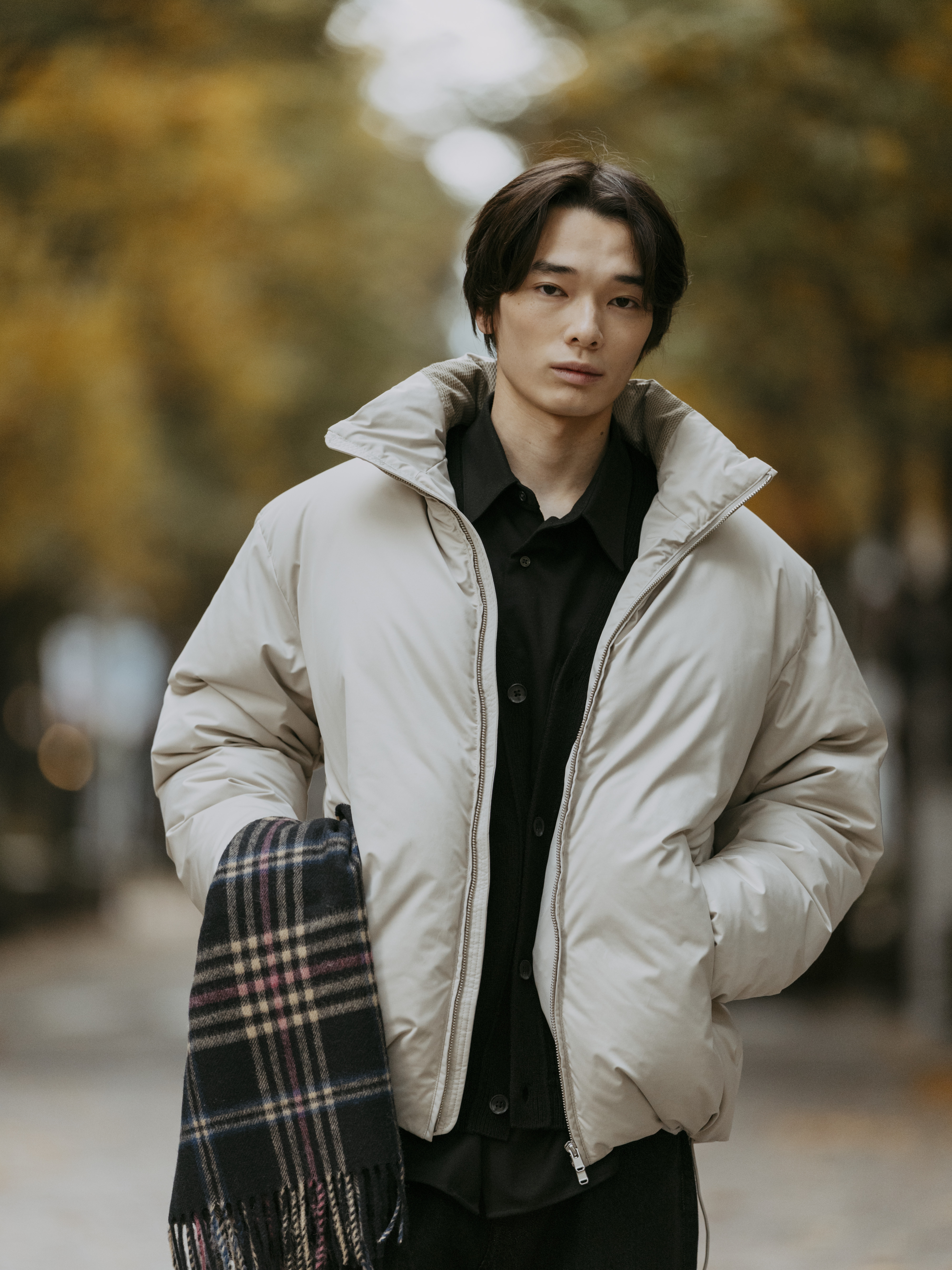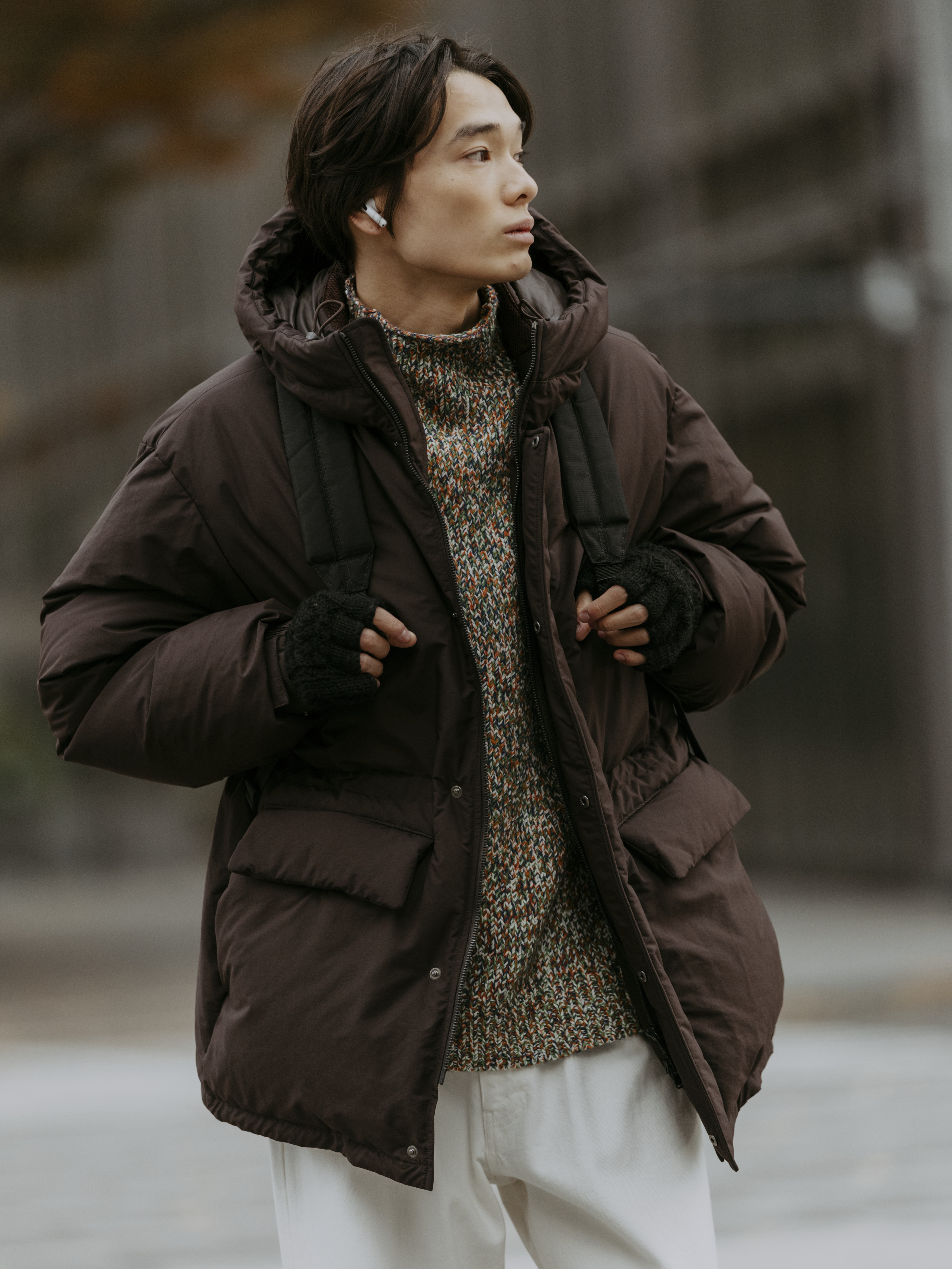 ここでは、シェル+インナーダウンと、インナーダウンのみの2通りの着こなしをご紹介。