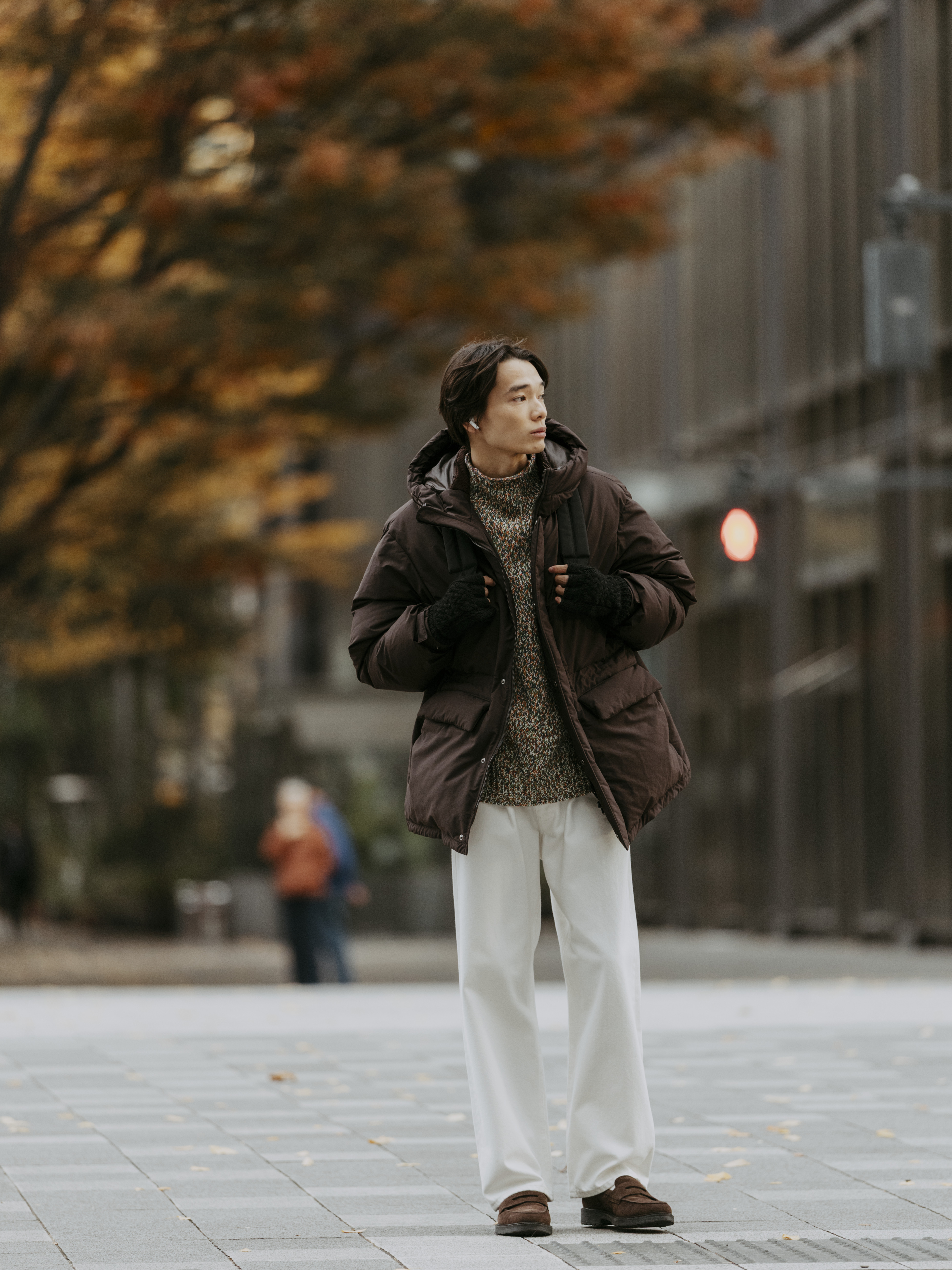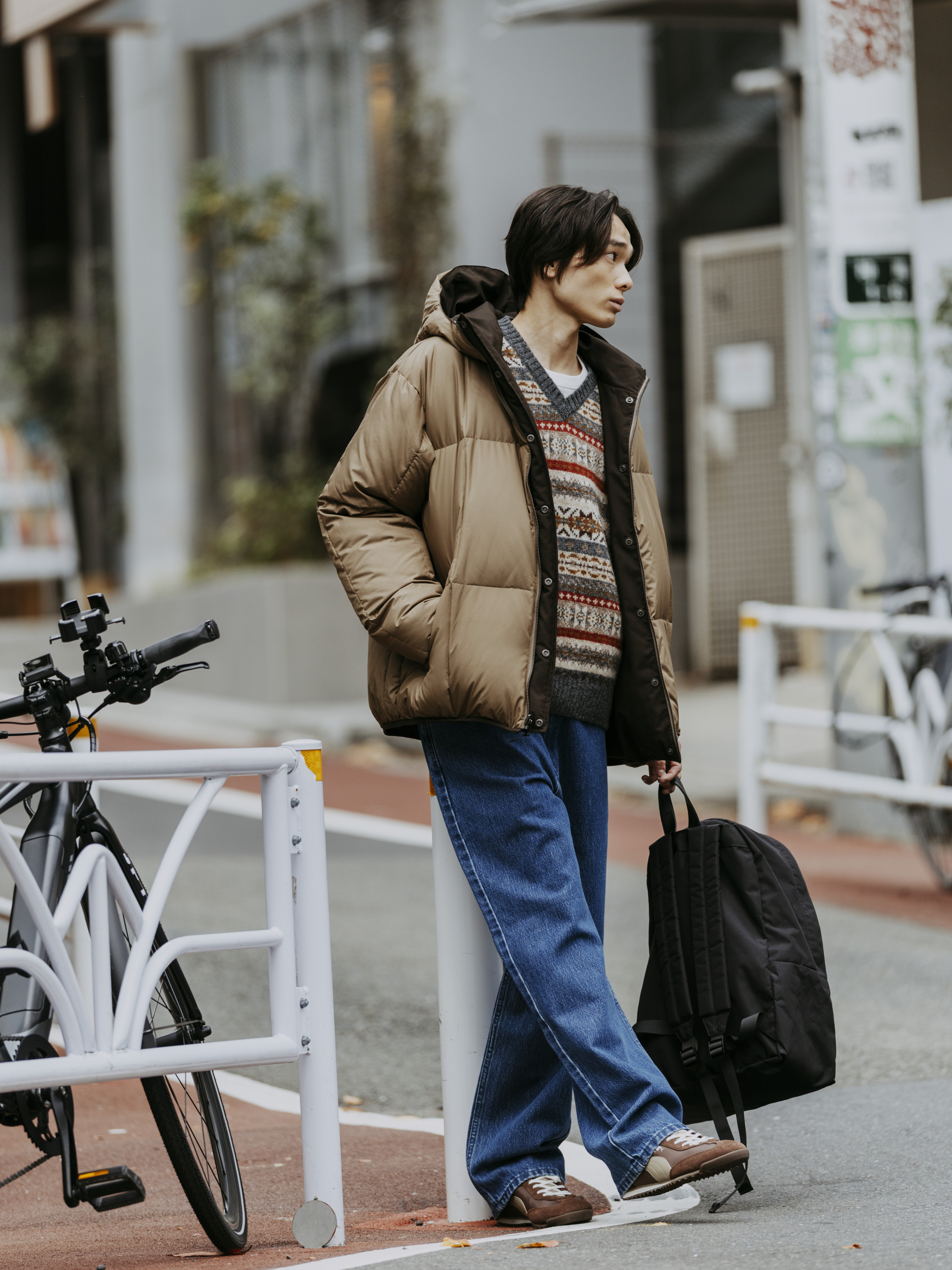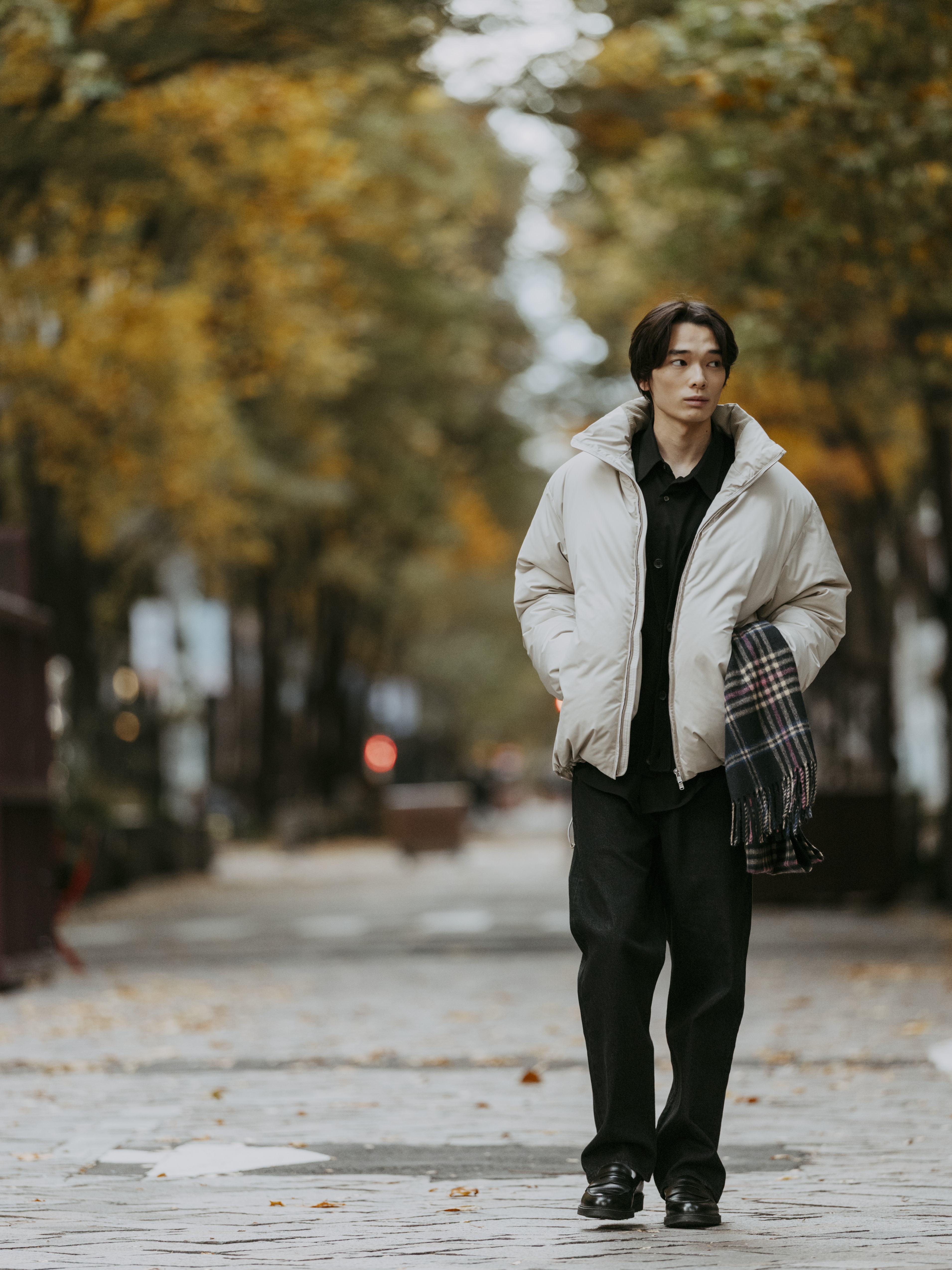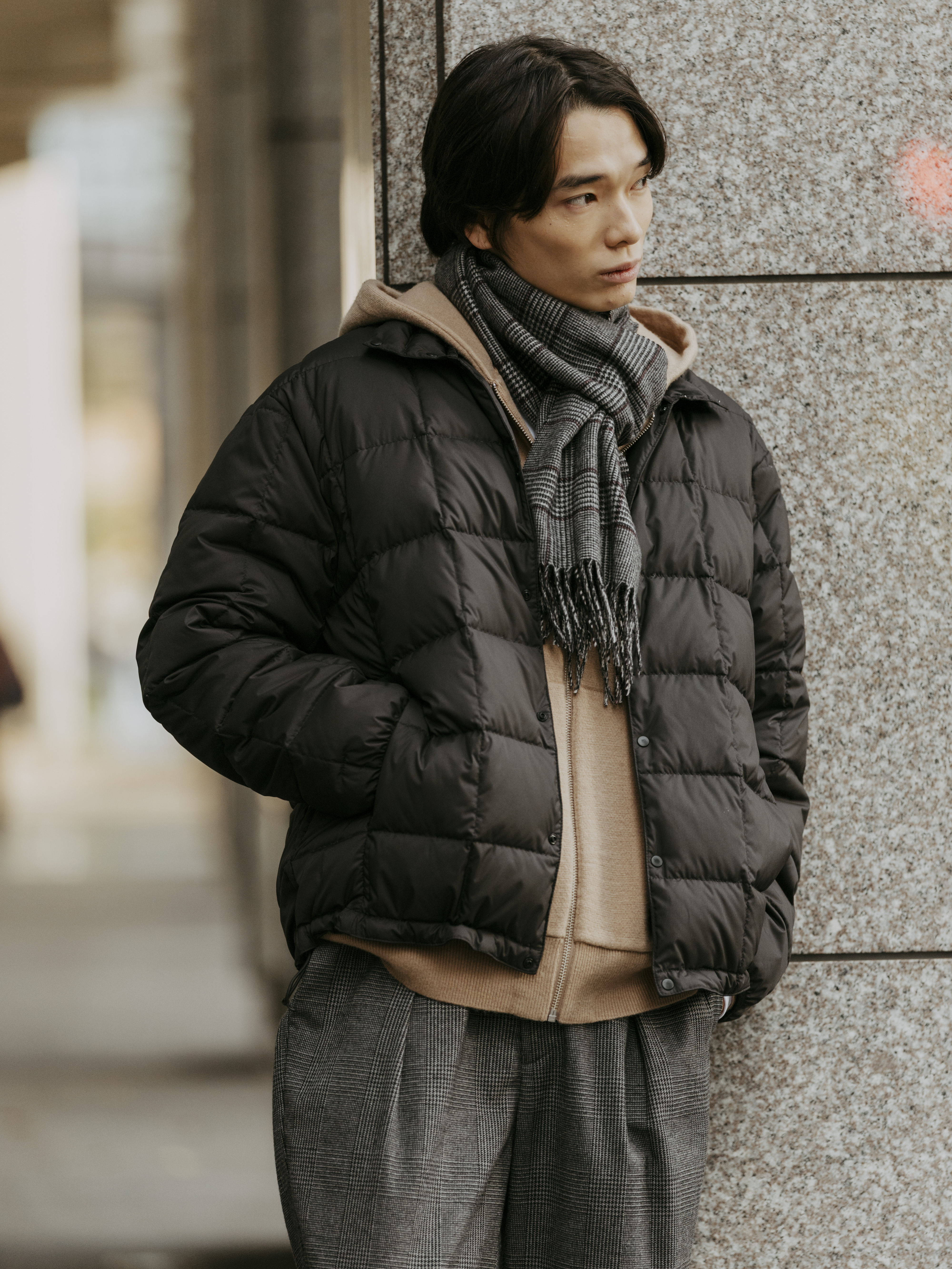 ここでは、シェル+インナーダウンと、インナーダウンのみの2通りの着こなしをご紹介。