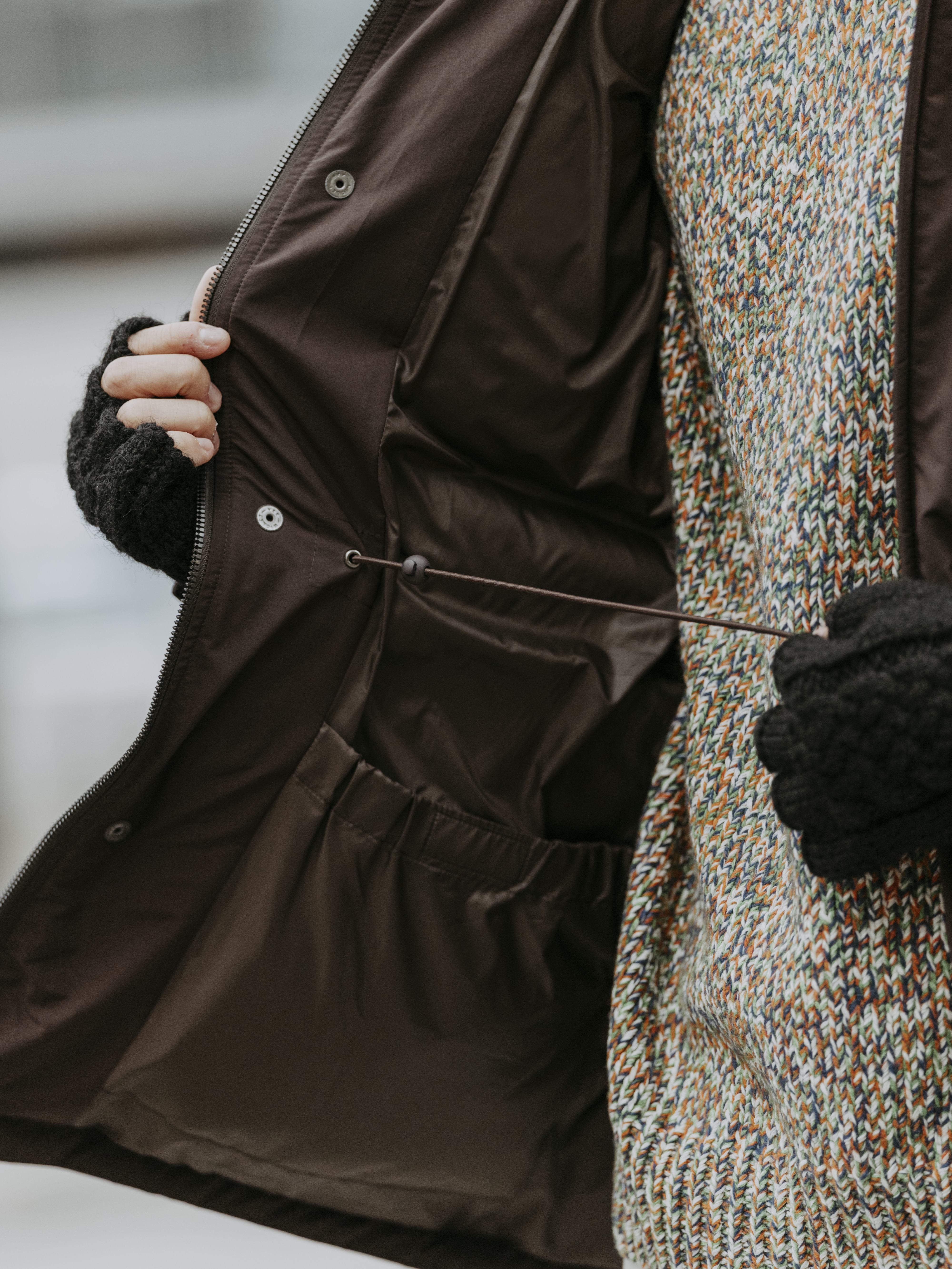 シェルにインナーダウンを装着可能。着膨れ感がないすっきり見えするパターンニングもメリットです。