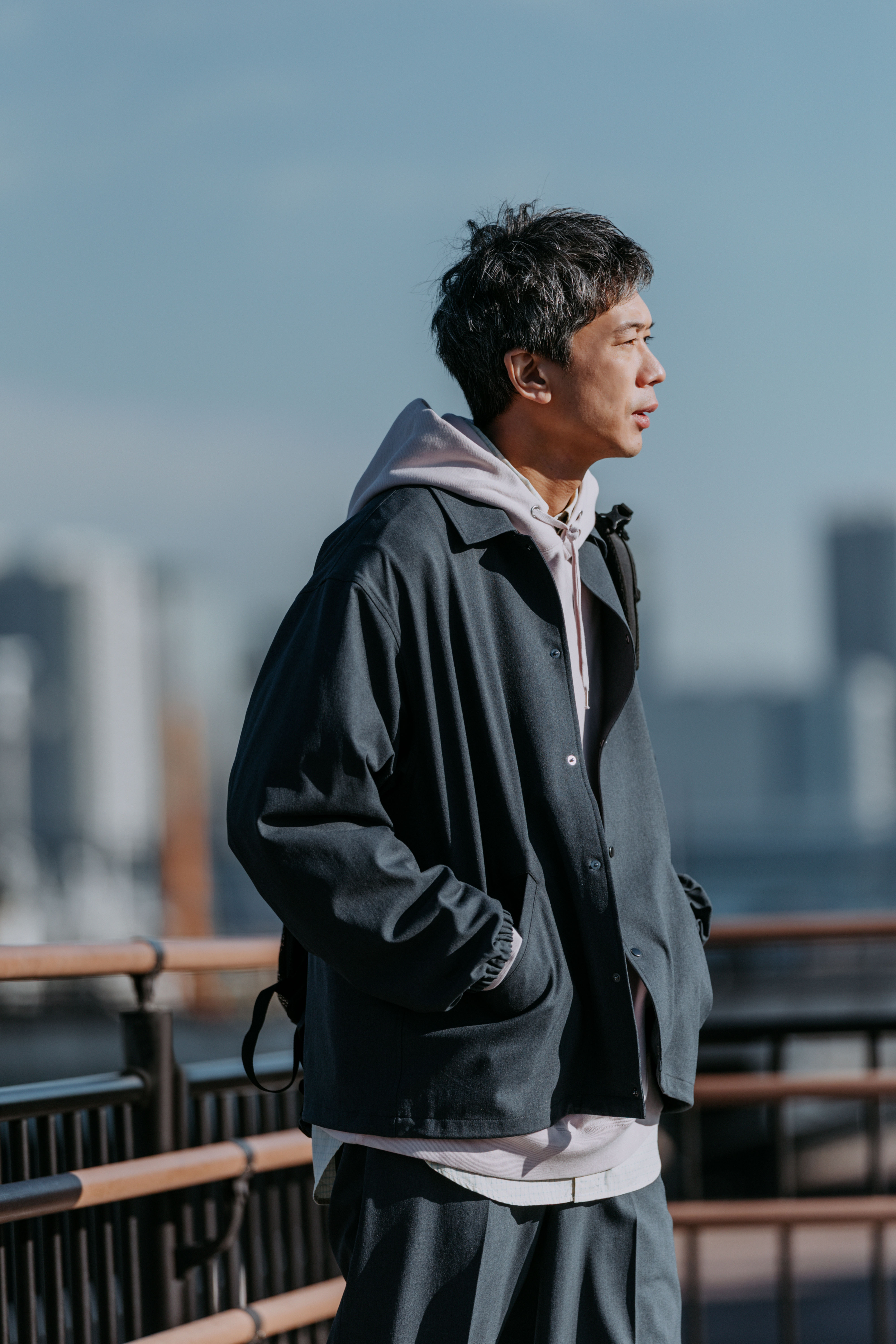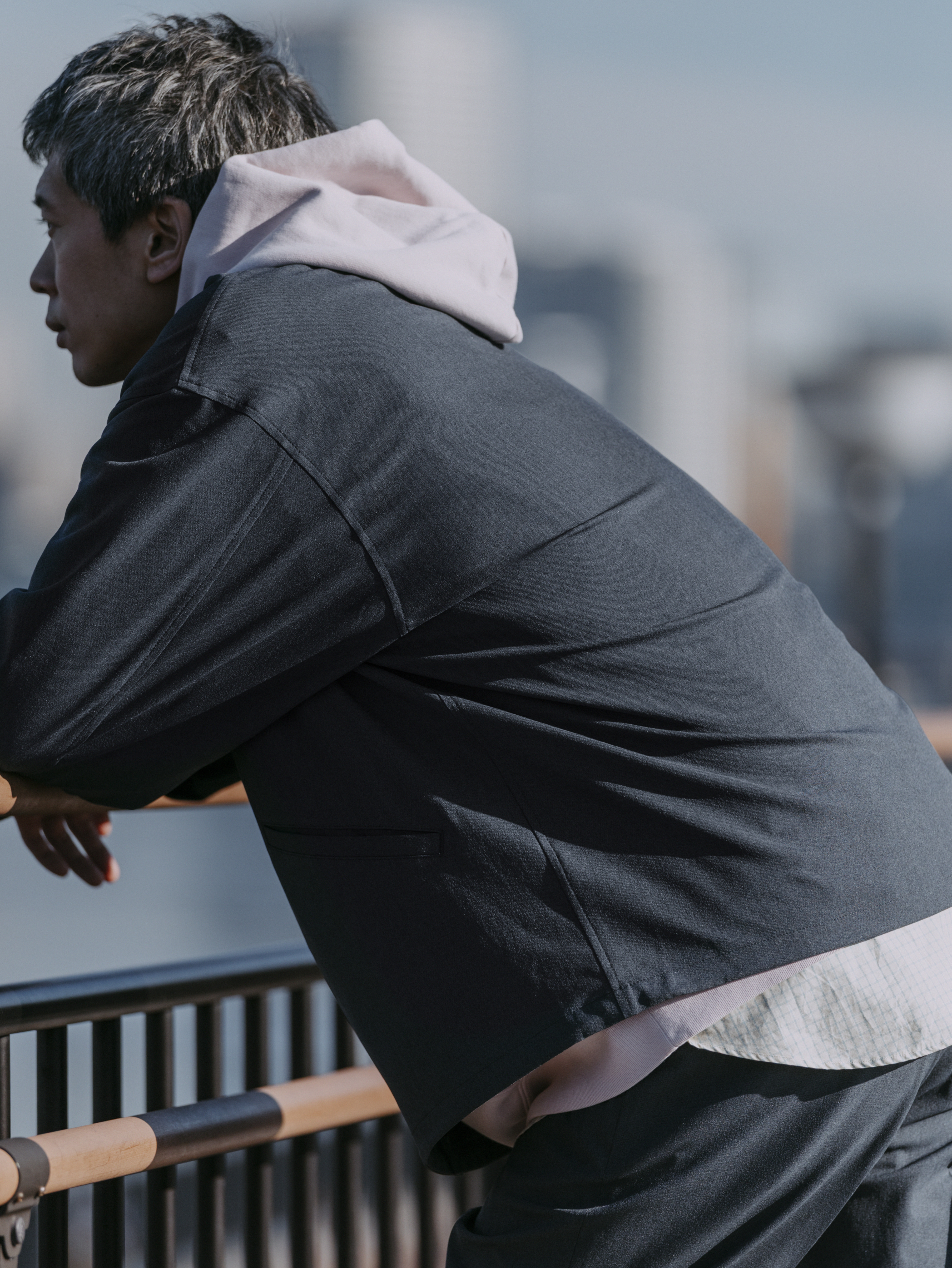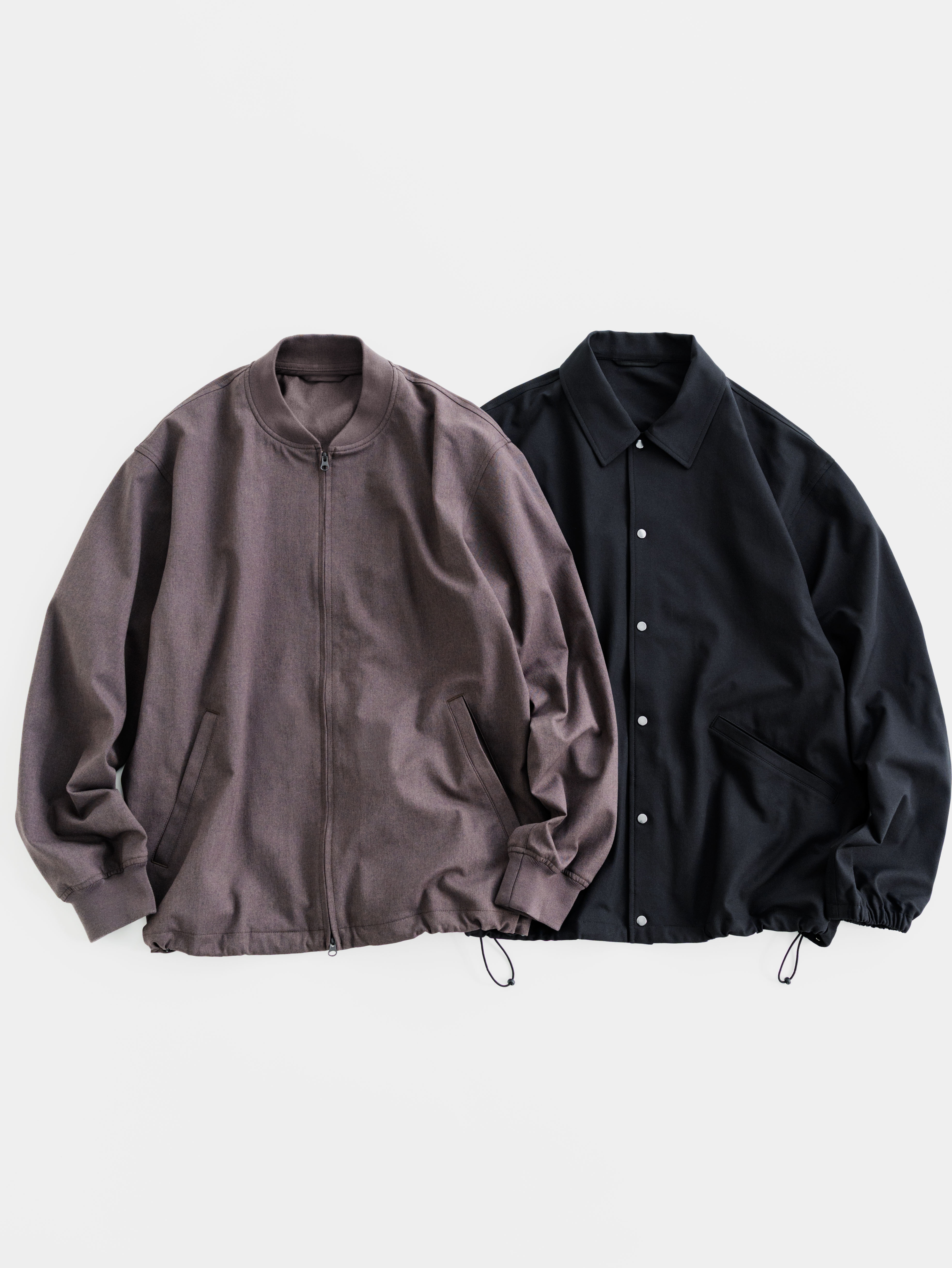コーチジャケットは、トレンドでもあるボクシーなシルエットが特徴。ハリのある「フリーリッチ」特有の素材感が、このゆとりある形状をしっかりと体現してくれます。