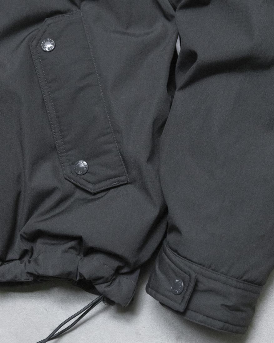現在では廃盤となった<THE NORTH FACE PURPLE LABEL> のショートダウンパーカをベースにした<monkey time>エクスクルーシブです。素材には定番の65/35ベイヘッドクロスを使用し、タウンユースに適したショート丈とダウン特有のボリュームを抑えたスッキリとしたシルエットが特徴。裏地には50デニールのポリエステルリップストップ、ダウンには光電子®ダウンを使用する事で抜群の保温性とデザイン性の双方がバランス良く両立されたモデルです。完成度の高い本モデルをベースに、ダークトーンでミニマル且つ都会的にアレンジをした別注モデルです。