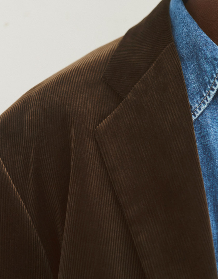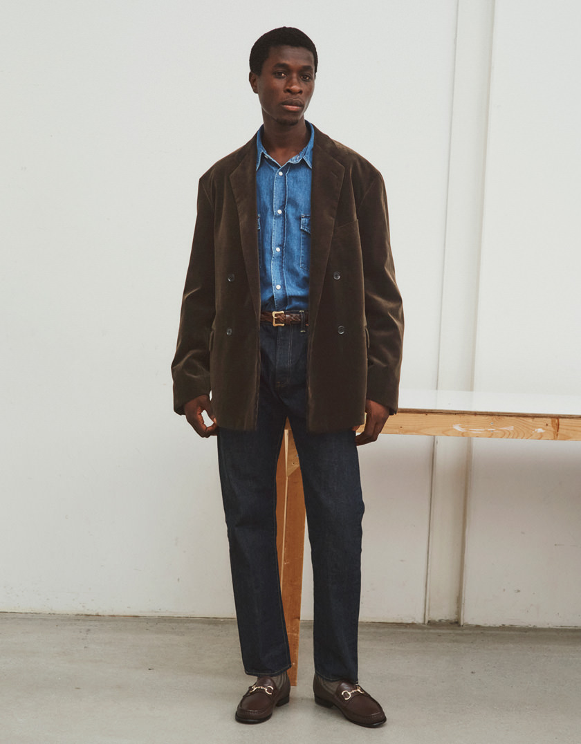 <カモシタ>のコーデュロイジャケット。好みのサイジングで着て頂けるように企画した新モデルです。大きめに着ても様になるよう、デザインや仕立てにこだわりました。