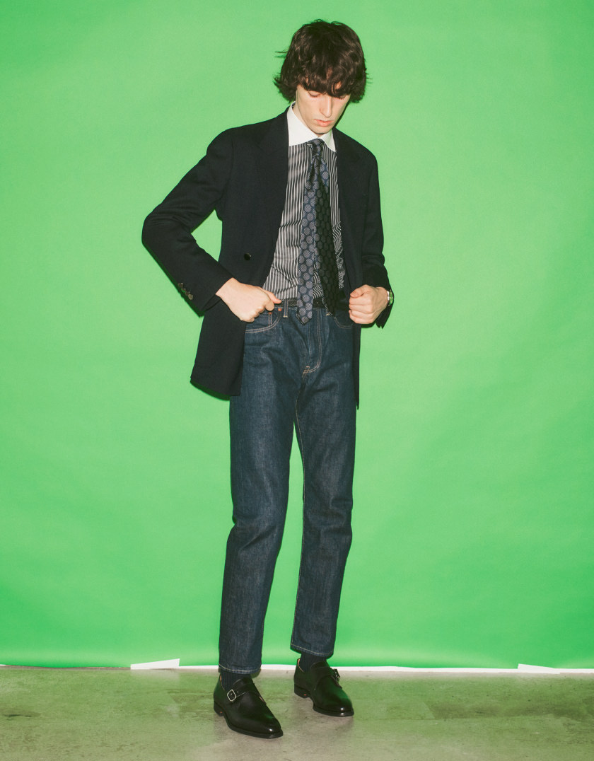 デニムとともに育ってきた方もそうでない方も、最近はデニムを着たいというムードが高まっているはず。飾らず自然体に見せてくれるデニムの良さと、エレガントなジャケットの合わせが、今ちょうど良く感じられます。