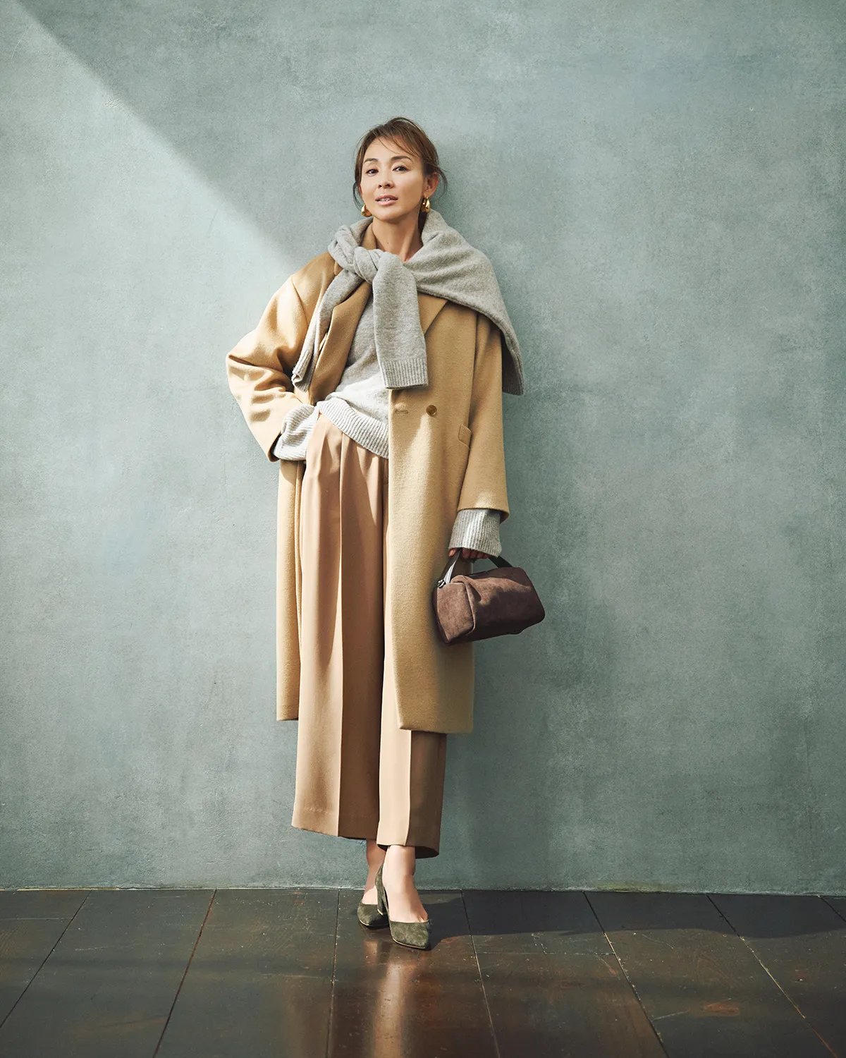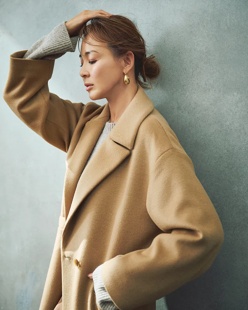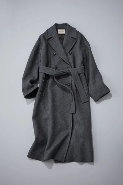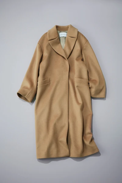 膝下まである着丈にビッグシルエットのデザインが、ハンサムかつエレガントな魅力たっぷりのテーラードコート。こだわりの別注素材のきめ細かな毛並みとふっくらとした風合いにより、ベージュのワントーンコーデがより高級感ある佇まいに。