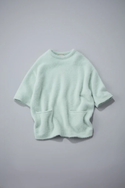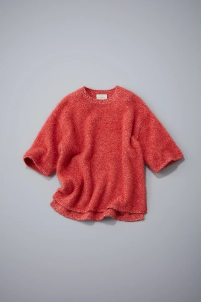 スパンコールニットのプルオーバー。控えめに輝くスパンコールの特別感はありつつ、形はベーシックに着やすい丸首のボックスシルエット。前後差のあるヘムラインでアクセントを効かせたデザインは、軽やかに日常に寄り添います。