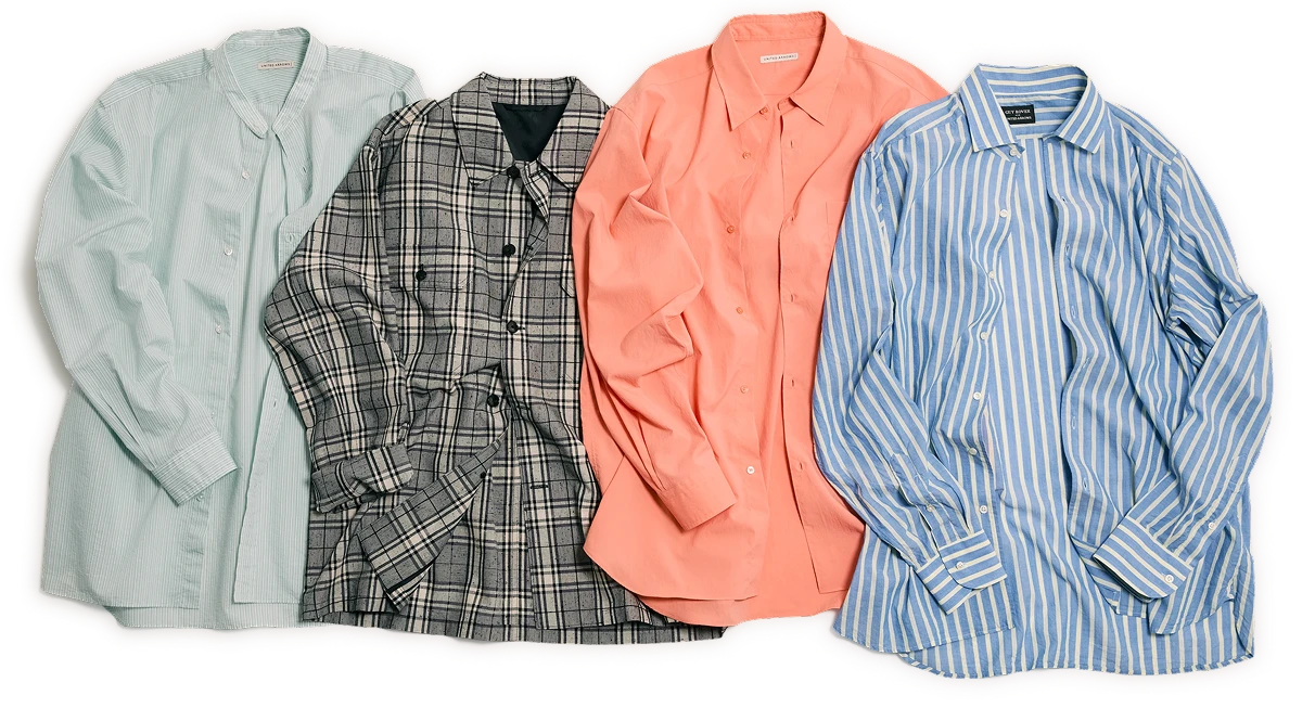洗いざらしで見栄えがいい生地、裾を出して着ることを考えたバランス、