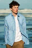 ボタンの留め方は好みで、襟や袖口にニュアンスを付けて着て楽しんで。