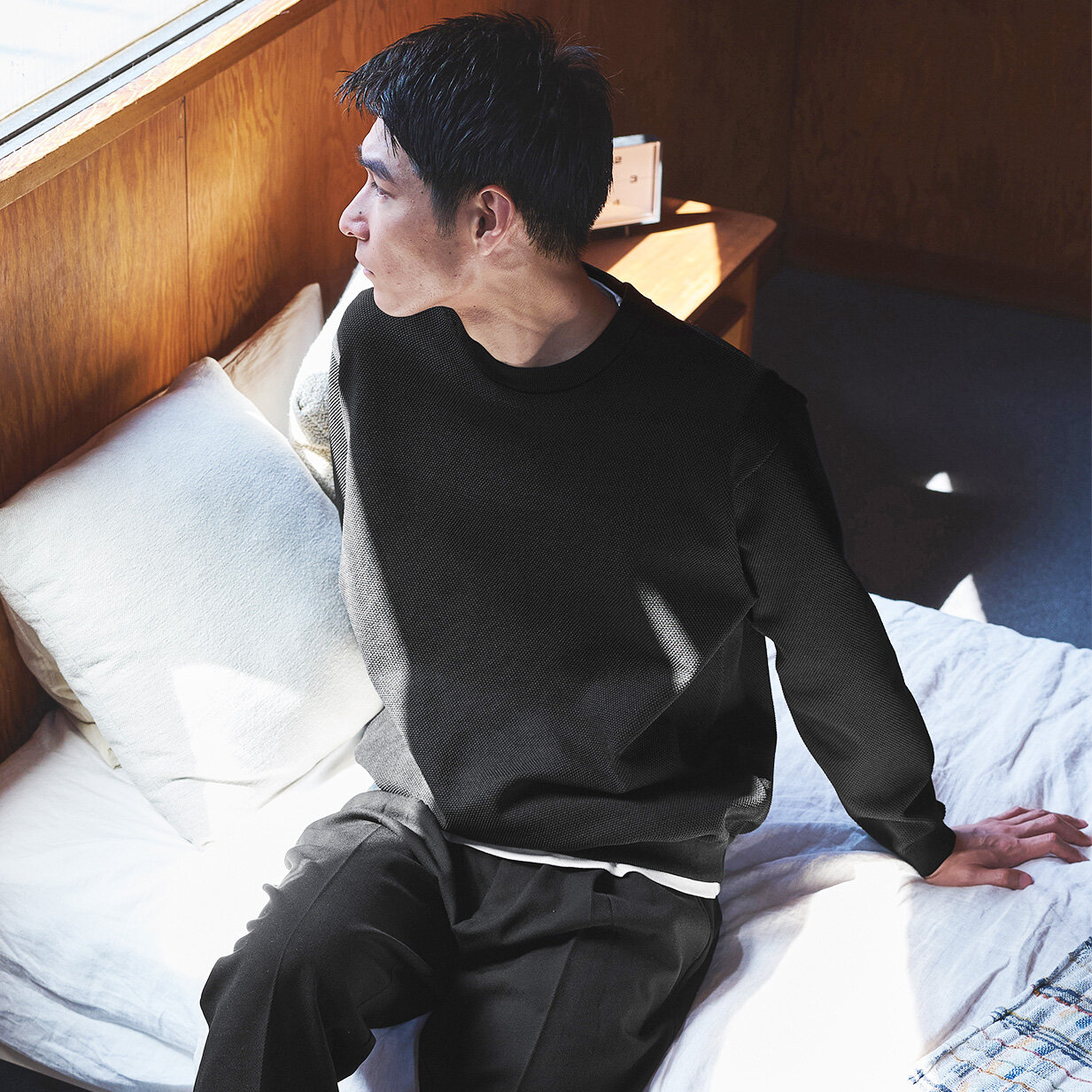 着用シーズン長くお楽しみいただけるよう、ウォーム感を抑えた生地感がポイントです。