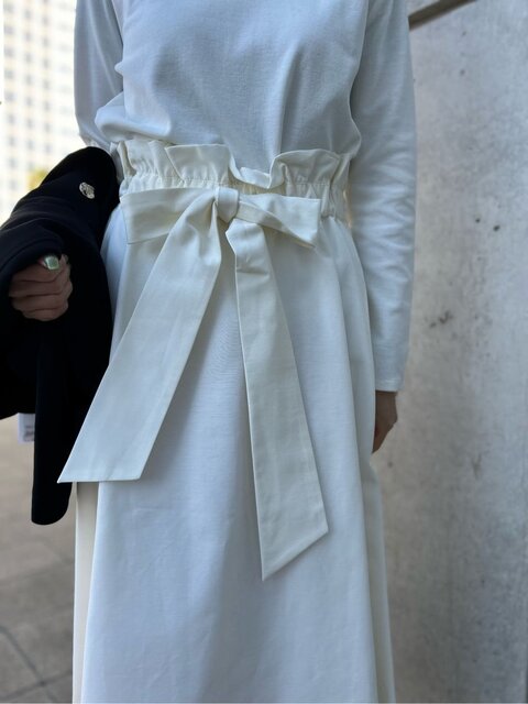 普段使いも出来るアイテムを使ったセレモニースタイル。 ジャケットはシワになりにくい素材でデニムやワイドパンツと合わせカジュアルダウンしたコーディネートもおすすめです。 センターのリボンが特徴的なスカートは張り感がありシルエットの綺麗さが魅力です。