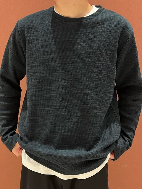 表情ある杢調のワッフルとクリーンな白Tのコントラストが映えます。