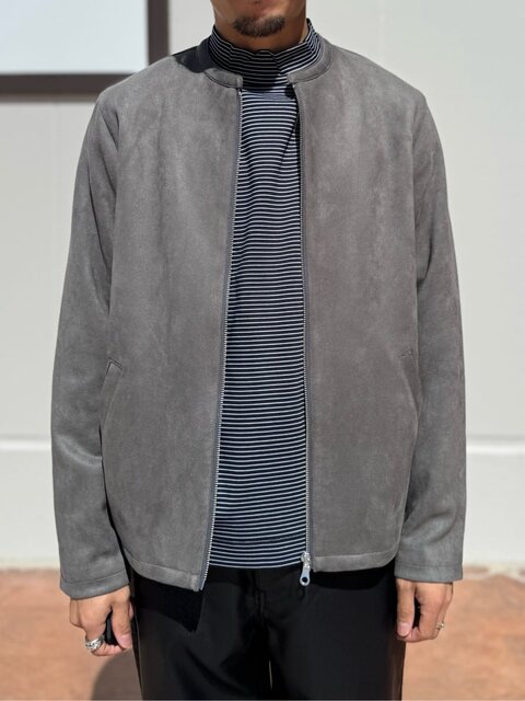スエード調の表情のある素材を選べばアウターのように羽織ってもサマになります。