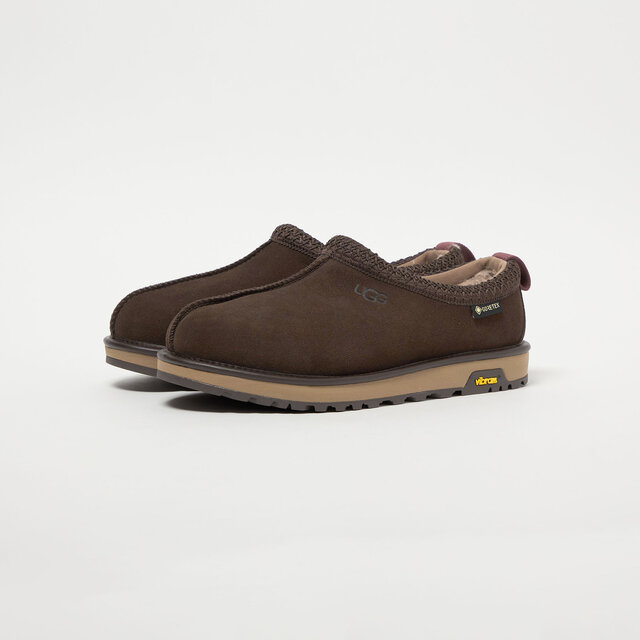 上品なダークブラウンを纏った、〈ビューティー&ユース〉直営店限定カラーの〈アグ〉の「タスマン」と「クラシックミニ」。アッパーには防水性のあるスエードを、内側にはゴアテックスメンブレンを採用し、サトウキビ由来の軽量EVAのミッドソールとグリップ性に優れたビブラム®︎アウトソールが足元をしっかり支えます。