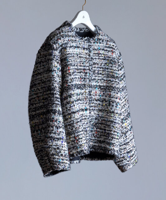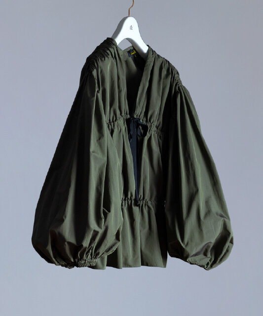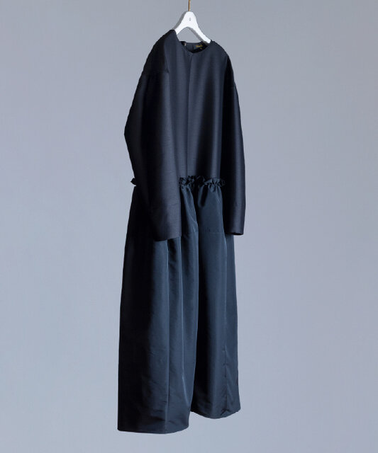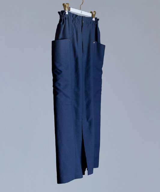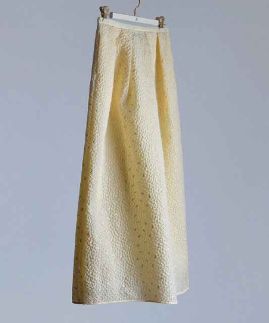 幾何柄を散りばめたコクーンシルエットのスカートは、