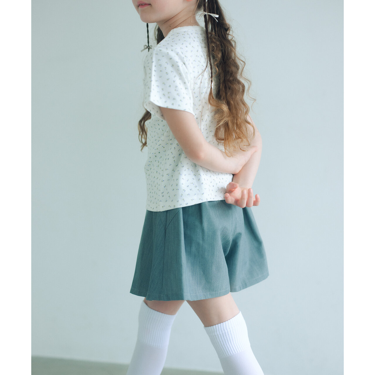 小花柄とピコレースのみじかすぎないクロップド丈がガーリーフェミニンなアイテム
