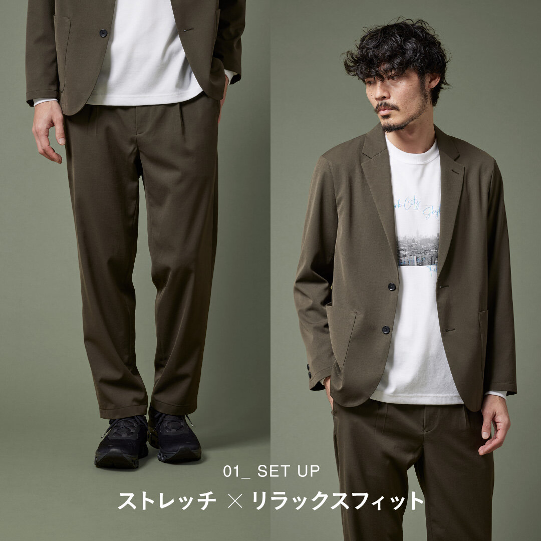ストレッチ性のあるポリエステルツイルで快適な着心地と防シワ・撥水性を両立。定番のリラックスシルエットにフロントカーブを微調整し、より品のある印象に。同素材パンツとのセットアップもおすすめ。リサイクルポリエステルを使用した環境配慮型のセットアップです。