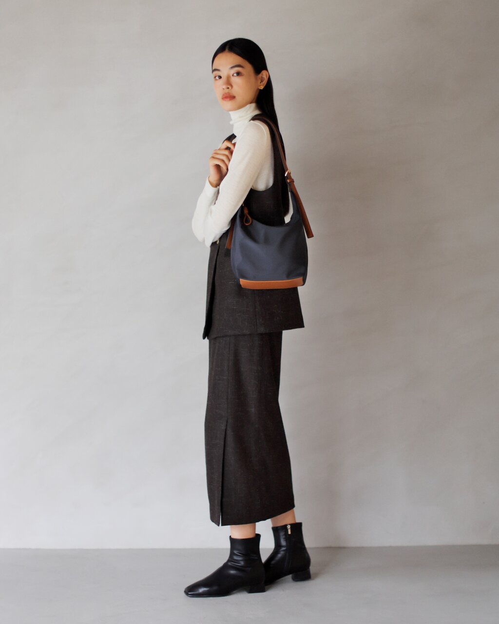 ネイビーカラーの<PARTE>バッグをチョイス。